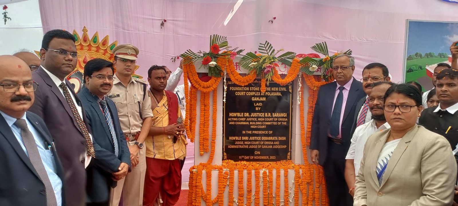 ପୋଲସରା ,୧୧/୧୧(ପିପିଟି): ଆଜି ସ୍ଥାନୀୟ ଦେଓ୍ବାନୀ ଅଦାଲତ ର କୋଠା ନିର୍ମାଣ ପାଇଁ ଭିତ୍ତିପ୍ରସ୍ତର ସ୍ଥାପନ କାର୍ଯ୍ୟକ୍ରମ ଅନୁଷ୍ଠିତ ହୋଇଯାଇଛି। ୫.୮୫ କୋଟି ଟଙ୍କା ବ୍ୟୟରେ ନିର୍ମାଣ ହେବାକୁ ଥିବା ଦେଓ୍ବାନୀ ଅଦାଲତ କୋଠା ଓ ଅନ୍ୟାନ୍ୟ ନିର୍ମାଣ କାର୍ଯ୍ୟ କୁ ରାଜ୍ୟ ଉଚ୍ଚ ନ୍ୟାୟାଳୟ ର ମାନ୍ୟବର କାର୍ଯ୍ୟକାରୀ ବିଚାରପତି ଡ• ବିଦ୍ୟୁତ ରଞ୍ଜନ ଷଡ଼ଙ୍ଗୀ ଭିତ୍ତିପ୍ରସ୍ତର ସ୍ଥାପନ କରିଛନ୍ତି। ଏହି ଭିତ୍ତିପ୍ରସ୍ତର ସ୍ଥାପନ କାର୍ଯ୍ୟକ୍ରମ ରେ ଉଚ୍ଚ ନ୍ୟାୟାଳୟ ର ଅନ୍ୟତମ ବିଚାରପତି ଦେବବ୍ରତ ଦାସ ଯୋଗ ଦେଇଥିଲେ। ଉତ୍ସବ ରେ ଅନ୍ୟମାନଙ୍କ ମଧ୍ୟରେ ଗଞ୍ଜାମ ଜିଲ୍ଲା ଜଜ ଶ୍ରୀମତି ରୁପଶ୍ରୀ ଚୌଧୁରୀ , ପୋଲସରା ପ୍ରଥମ ଶ୍ରେଣୀ ବିଚାର ବିଭାଗୀୟ ମାଜିଷ୍ଟ୍ରେଟ ଶ୍ରୀମତି ଦୀପ୍ତିମୟି ଙ୍କ ସମେତ ଗଞ୍ଜାମ ଜିଲ୍ଲା ଆରକ୍ଷୀ ଅଧିକ୍ଷକ ଜଗମୋହନ ମୀନା , ବ୍ରହ୍ମପୁର ଜିଲ୍ଲା ଆରକ୍ଷୀ ଅଧିକ୍ଷକ ଶରବଣା କୁମାର ଉପସ୍ଥିତ ଥିଲେ। ପୋଲସରା ବାର ଆଇନଜୀବୀ ସଂଘର ସଭାପତି ସୁଶାନ୍ତ କୁମାର ସାହୁ , ସମ୍ପାଦକ କବିରାଜ ଦାସ , ଏପିପି ରମେଶ ଚନ୍ଦ୍ର ପ୍ରଧାନ , ବରିଷ୍ଠ ଆଇନଜୀବି ଗୌରହରି ବିଷୋୟୀ , ବଳରାମ ପ୍ରଧାନ , ଅଗସ୍ତି ବରାଡ , ଶରତ ଚନ୍ଦ୍ର ପ୍ରଧାନ , ବ୍ରଜେନ୍ଦ୍ର ସାହୁ , ବ୍ରଜବନ୍ଧୁ ଦଳବେହେରା , ସଚ୍ଚିଦାନନ୍ଦ ପାଣିଗ୍ରାହୀ , ରତ୍ନାକର ମହାନ୍ତି , ରଜନୀକାନ୍ତ ପ୍ରଧାନ , ଲକ୍ଷ୍ମୀକାନ୍ତ ପାଢ଼ୀ , ଜ୍ୟୋତିର୍ମୟ ପଟ୍ଟନାୟକ , ସିମାଞ୍ଚଳ ହୋତା , ସପନ ମିଶ୍ର , ପ୍ରଶାନ୍ତ ଆଚାର୍ଯ୍ୟ , ସୁଶାନ୍ତ କୁମାର ମଳିକ , ସୁଶାନ୍ତ ସାହାଣୀ , ଅନିଳ ମହାଙ୍କୁଡ , ସୁଧାଂଶୁ ଶେଖର ପ୍ରଧାନ , ଅକ୍ଷୟ ଦାସ , ଅଜୟ ପଣ୍ଡା , ହରପ୍ରସାଦ ଦାସ , ଶରତ ଚନ୍ଦ୍ର ପଟ୍ଟନାୟକ , ଦେବାଶିଷ ପାତ୍ର , ବାସୁଦେବ ଡାକୁଆ , ଜମିର ଅଲ୍ଲୀ ଖାଁ , ସୁଜ୍ଞାନୀ ସାହୁ , ସୁକାନ୍ତି ସାହୁ , ବିଜୟ କୁମାର ଶାସମଲ , ରବିନ୍ଦ୍ର ପାତ୍ର ପ୍ରମୁଖ ଆଇନଜୀବୀ ମାନେ ଭିତ୍ତିପ୍ରସ୍ତର ସ୍ଥାପନ ଉତ୍ସବ ଆୟୋଜନ ଓ ପରିଚାଳନା ରେ ପୂର୍ଣ୍ଣ ସହଯୋଗ କରିଥିଲେ।