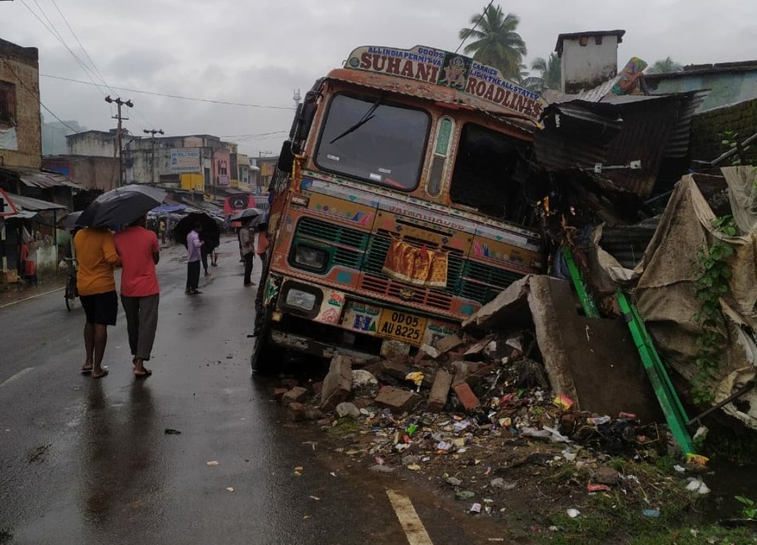 ଭଞ୍ଜନଗର, ୧୩/୧୧. ଭଞ୍ଜନଗର ଥାନା ଅନ୍ତର୍ଗତ କୁଲାଡ଼ ଗ୍ରାମରେ ଶୁକ୍ରବାର ବିଳମ୍ବିତ ରାତିରେ ଏକ ସିମେଣ୍ଟ ବୋଝେଇ ଟ୍ରକ ଓଡ଼ି ୦୫ ଏୟୁ ୮୨୨୫ ଭାରସାମ୍ୟ ହରାଇ ଦୋକାନ ଭିତରକୁ ପଶିଯିବାରୁ ଗାଡ଼ି ସମେତ କେତେକ ଦୋକାନର ମଧ୍ୟ ସାମ୍ନା ପଟ ଭାଙ୍ଗି ନଷ୍ଟ ହୋଇଯାଇଛି।ଟ୍ରକଟି ନୟାଗଡ଼ ଦଶପଲ୍ଲାରୁ ଆସୁଥିବା ବେଳେ ଏହି ଦୁର୍ଘଟଣା ଘଟିଥିବା ଜଣାପଡିଛି।ଘଟଣା ସ୍ଥଳରୁ ଡ୍ରାଇଭର ଫେରାର ହୋଇଯାଇଛି।ଖବର ପାଇ ଭଞ୍ଜନଗର ପୋଲିସ ସେଠାରେ ପହଞ୍ଚି ତଦନ୍ତ ଆରମ୍ଭ କରିଛି।