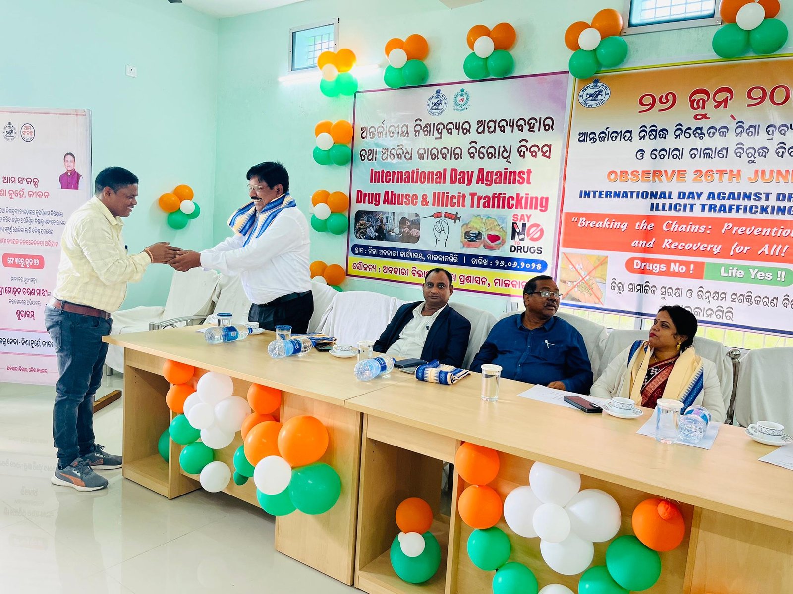 ମାଲକାନଗିରି, ୨୬/୦୬(ପିପିଟି) :ଜିଲ୍ଲା ସାମାଜିକ ସୁରକ୍ଷା ଓ ଭିନ୍ନକ୍ଷମ ସଶକ୍ତିକରଣ ଓ ଜିଲ୍ଲା ଅବକାରୀ ବିଭାଗର ମିଳିତ ଆନୁକୂଲ୍ୟରେ ଅନ୍ତର୍ଜାତୀୟ ନିଷିଦ୍ଧ ନିଶ୍ଚେତକ ନିଶା ଦ୍ରବ୍ୟର ଅପବ୍ୟବହାର ଓ ଚୋରା ଚାଲାଣ ବିରୁଦ୍ଧରେ ସଚେତନତା ଦିବସ ପାଳିତ ହୋଇଯାଇଛି । ଏହି ଅବସରରେ ପୂର୍ବାହ୍ନରେ ସ୍ଥାନୀୟ କ୍ରୀଡା ପଡିଆ ଠାରୁ ଡିଏନକେ ପର୍ଯ୍ୟନ୍ତ ଏକ ସଚେତନତା ଗଣ ଦୌଡର ଆୟୋଜନ କରାଯାଇଥିଲା । ଏହାପରେ ଜିଲ୍ଲାପାଳଙ୍କ କାର୍ଯ୍ୟାଳୟ ଠାରୁ ଅବକାରୀ କାର୍ଯ୍ୟାଳୟ ପର୍ଯ୍ୟନ୍ତ ଏକ ସଚେତନତା ପଦଯାତ୍ରା ଅନୁଷ୍ଠିତ ହୋଇଥିଲା। ଏହା ପରେ ଜିଲ୍ଲା ଅବକାରୀ କାର୍ଯ୍ୟାଳୟ ଠାରେ ଏକ କର୍ମଶାଳା ମଧ୍ୟ ଆୟୋଜନ କରାଯାଇଥିଲା। ଏହି କାର୍ଯ୍ୟକ୍ରମକୁ ବିଚାରପତି ସଂଗୀତା ପାତ୍ର ଓ ଅତିରିକ୍ତ ଜିଲ୍ଲାପାଳ ରାଜସ୍ୱ ବେଦବର ଆନୁଷ୍ଠାନିକ ଭାବେ ଉଦଘାଟନ କରିଥିଲେ। ଜିଲ୍ଲା ନିଶା ନିବାରଣ କେନ୍ଦ୍ର ଦ୍ଵାରା ନିଶା ମୁକ୍ତ ହୋଇଥିବା ଚାରି ଜଣ ଅନ୍ତେବାସୀଙ୍କୁ ସମ୍ବର୍ଦ୍ଧନା କରାଯାଇଥିଲା ଓ ଦୁର୍ଗା କିନ୍ନରଙ୍କୁ ନିଶା ବିରୁଦ୍ଧ ପଦକ୍ଷେପ ନିମନ୍ତେ ମଧ୍ୟ ସମ୍ବର୍ଦ୍ଧନା କରାଯାଇଥିଲା। ଏହି କାର୍ଯ୍ୟକ୍ରମରେ ସମ୍ମାନିତ ଅତିଥିଭାବେ ଜିଲ୍ଲା ସିଭିଲ କୋର୍ଟ ରେଜିଷ୍ଟ୍ରାର କୈଳାସ ସାହୁ, ଅଶୋକ ପଟ୍ଟନାୟକ, ସାଗର ପାଣିଗ୍ରାହୀ ପ୍ରମୁଖ ଯୋଗ ଦେଇଥିଲେ। ଜିଲ୍ଲା ସାମାଜିକ ସୁରକ୍ଷା ଅଧିକାରୀ ନିର୍ମଳ ଧରୁଆ, ଅବକାରୀ ଅଧିକ୍ଷକ, ବିମ୍ବାଧର ପଣ୍ଡା ଯୋଗ ଦେଇଥିବା ବେଳେ ଜ଼ିଲ୍ଲା ସାମାଜିକ ସୁରକ୍ଷା ଓ ଭିନ୍ନକ୍ଷମ ସଶକ୍ତିକରଣ ଏବଂ ଜିଲ୍ଲା ଅବକାରୀ ବିଭାଗର ସମସ୍ତ କର୍ମଚାରୀ ଉପସ୍ଥିତ ଥିଲେ।