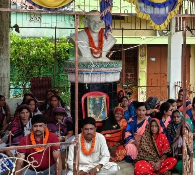 ପିଇବା ପାଣି ସମସ୍ୟା ନେଇ ଗୋବରା ସମିତିସଭ୍ୟଙ୍କ ଗାନ୍ଧୀ ପ୍ରତିମୂର୍ତ୍ତୀ ତଳେ ଆମରଣ ଅନଶନ; ଦୁଇ ଘଣ୍ଟା ପରେ ପ୍ରତିଶୃ୍ତି ଦେଇ ଉଠାଇଲା ପ୍ରଶାସନ ।