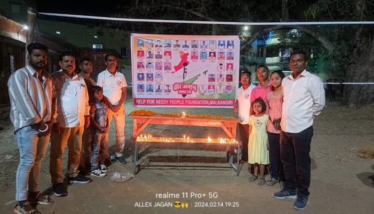 ମାଲକାନଗିରି,୧୫/୦୨(ପିପିଟି) :ହେଲ୍ପ ଫର୍ ନିଡ୍ ପିପୁଲ୍ ଫାଉଣ୍ଡେସନ ତରଫରୁ ମାଲକାନଗିରି ଶହୀଦ ଲକ୍ଷ୍ମଣ ନାୟକ ଛାତ୍ରାବାସ ଠାରେ ପୁଲାୱମା ବିସ୍ଫୋରଣରେ ଶହୀଦ ହୋଇଥିବା ବୀର ଯବାନମାନଙ୍କୁ ଶ୍ରଦ୍ଧାଞ୍ଜଳୀ ଜ୍ଞାପନ କରାଯାଇଥିଲା।