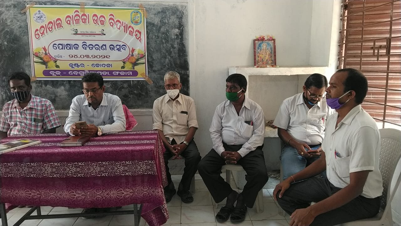 କୋଦଳା,୩୦/୦୩(ପିପିଟି);ବେଗୁନିଆଡା ବ୍ଲକ କୋଦଳା ଏନ୍ଏସି ଅନ୍ତର୍ଗତ ନୋଡାଲ ବାଳିକା ଉଚ୍ଚ ବିଦ୍ୟାଳୟ ପରିସର ରେ ପ୍ରଧାନ ଶିକ୍ଷକ ପ୍ରଫୁଲ୍ଲ କୁମାର ପ୍ରଧାନଙ୍କ ତତ୍ୱାବଧାନ ତଥା ବିଦ୍ୟାଳୟ ପରିଚାଳନା କମିଟି ସଭାପତି ମାଗୁଣି ସେଠୀ ଅଧ୍ୟକ୍ଷତାରେ ପୋଷାକ ବିତରଣ ଉତ୍ସବ ଅନୁଷ୍ଠିତ ହୋଇଯାଇଛି । ଏହାକୁ ମୁଖ୍ୟ ଅତିଥି ଭାବେ କୋଦଳା ଅତିରିକ୍ତ ତହସିଲଦାର ଅଶୋକ କୁମାର ତ୍ରିପାଠୀ ଯୋଗଦେଇ କାର୍ଯ୍ୟକ୍ରମକୁ ଆନୁଷ୍ଠାନିକ ଭାବେ ପ୍ରଦୀପ ପ୍ରଜ୍ବଳନ କରିବା ସହିତ ପୋଷାକ ବିତରଣ କାର୍ଯ୍ୟକ୍ରମର ଶୁଭାରମ୍ଭ କରି ଛାତ୍ରଛାତ୍ରୀଙ୍କୁ କିଛି ମହତ୍ତ ଉପଦେଶ ପ୍ରଦାନ କରିଥିଲେ । କାର୍ଯ୍ୟକ୍ରମ ଆରମ୍ଭ ରେ ଶିକ୍ଷକ ଶରତ ଚନ୍ଦ୍ର ଜାଲି ମଞ୍ଚ ପରିଚାଳନା କରିବା ସହିତ ଅତିଥି ପରିଚୟ ପ୍ରଦାନ କରି ଛାତ୍ର ଛାତ୍ରୀଙ୍କୁ ଉଦବୋଧନ ଦେଇଥିଲେ । ଏହି ଅବସର ରେ ପ୍ରଥମ ରୁ ପଞ୍ଚମ ୨୭୦ ଛାତ୍ରଛାତ୍ରୀଙ୍କୁ ଦୁଇହଳ ପୋଷାକ ସହିତ ମୋଜା ଓ ବୁଟ ପ୍ରଦାନ କରାଯାଇଥିବା ବେଳେ ଷଷ୍ଠ, ସପ୍ତମ ଓ ଅଷ୍ଟମ ଶ୍ରେଣୀର ୩୬୯ ଛାତ୍ରଛାତ୍ରୀଙ୍କୁ ଦୁଇହଳ ପୋଷାକ ଓ ମୋଜା ଓ ବୁଟ ପ୍ରଦାନ କରାଯାଇଥିଲା ।ଆଜିର ଏହି କାର୍ଯ୍ୟକ୍ରମରେ ବିଦ୍ୟାଳୟର ସମସ୍ତ ଶିକ୍ଷକ /ଶିକ୍ଷୟତ୍ରୀ, ଅଭିଭାବକ, ପରିଚାଳନା କମିଟି ସଦସ୍ୟ ଓ ଛାତ୍ରଛାତ୍ରୀ ଉପସ୍ଥିତ ଥିଲେ ।
