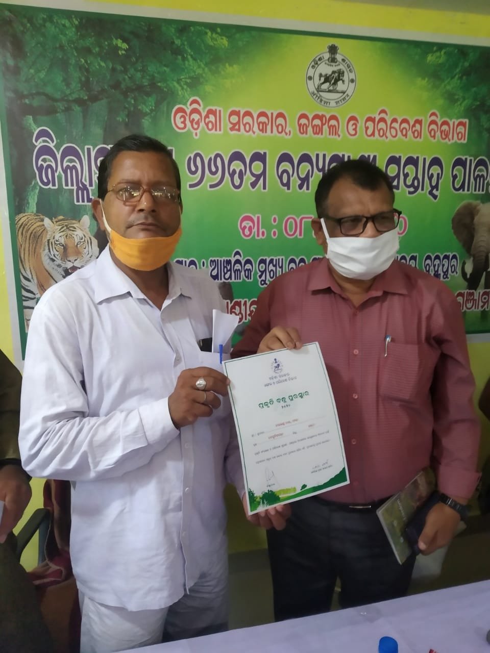 କୋଦଳା,ତା-୧୦/୧୦(ପିପିଟି); ଗଞ୍ଜାମ ଜିଲ୍ଲା ବେଗୁନିଆପଡ଼ା ବ୍ଲକ ଅନ୍ତର୍ଗତ ସାଙ୍କୁଡା ସ୍ଥିତ ଧବଳେଶ୍ଵର ବିଦ୍ୟାପୀଠର ବରିଷ୍ଠ ଶିକ୍ଷକ ନୀଳକଣ୍ଠ ଦାଶ ୨୦୨୦ ମସିହା ପାଇଁ ପ୍ରକୃତି ବନ୍ଧୁ ପୁରସ୍କାରରେ ସମ୍ମାନିତ ହୋଇଛନ୍ତି । ବ୍ରହ୍ମପୁର ଆଞ୍ଚଳିକ ମୁଖ୍ୟ ବନ ସଂରକ୍ଷକଙ୍କ କାର୍ଯ୍ୟାଳୟ ପରିସରରେ ଜିଲ୍ଲାସ୍ତରୀୟ ୬୬ ତମ ବନ୍ୟପ୍ରାଣୀ ସପ୍ତାହ ପାଳନ ଅବସରରେ ଆଞ୍ଚଳିକ ମୁଖ୍ୟ ବନ ସଂରକ୍ଷକ ପ୍ରଶାନ୍ତ କୁମାର ମିଶ୍ର ମାନପତ୍ର ସହ ଦଶ ହଜାର ଟଙ୍କାର ଏକ ଚେକ୍ ଶ୍ରୀ ଦାଶଙ୍କୁ ପ୍ରଦାନ କରିଥିଲେ । ଏହି କାର୍ଯ୍ୟକ୍ରମରେ ଉପସ୍ଥିତ ଅନ୍ୟ ମାନଙ୍କ ମଧ୍ୟରେ ବ୍ରହ୍ମପୁର ବନ ଖଣ୍ଡ ଅଧିକାରୀ ଅମ୍ଳାନ ନାୟକ, ଦକ୍ଷୀଣ ଘୁମୁସର ବନ ଖଣ୍ଡ ଅଧିକାରୀ ସତ୍ୟନାରାୟଣ ଦେହୁରୀ ସମେତ ଅନ୍ୟାନ୍ୟ ବିଭାଗୀୟ ଅଧିକାରୀ ମାନେ ଉପସ୍ଥିତ ଥିଲେ । ଶିକ୍ଷକ ଶ୍ରୀ ଦାଶ ଏହି ପୁରସ୍କାର ପାଇଥିବାରୁ ବ୍ଲକ୍ ର ଶିକ୍ଷକ ମାନଙ୍କ ସହ ବିଦ୍ୟାଳୟର ଛାତ୍ରଛାତ୍ରୀ ମାନେ ଖୁସି ବ୍ୟକ୍ତ କରିବା ସହ ଅଭିନନ୍ଦନ ଜଣାଇଛନ୍ତି । ଶ୍ରୀ ଦାଶ ସତ୍ୟସାଇ ସେବା ସଂଗଠନର ଜିଲ୍ଲା ସଂଯୋଜକ ଭାବେ ଦାୟିତ୍ଵ ଗ୍ରହଣ କରି ନିଜର ସାଂଗଠନିକ ଦକ୍ଷତାକୁ ମଧ୍ଯ ପ୍ରତିପାଦନ କରିଛନ୍ତି ।
