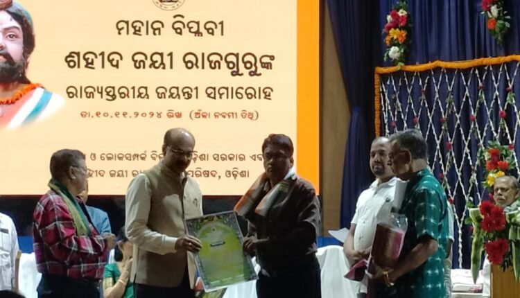 ଖୋର୍ଦ୍ଧା ,୧୦/୧୧(ପିପିଟି): ଓଡିଶା ସରକାର ଓ ଶହୀଦ ଜୟୀ ରାଜଗୁରୁ ସ୍ମୃତି ପରିଷଦ, ଓଡିଶାର ମିଳିତ ଆନୁକୂଲ୍ୟରେ ଭୁବନେଶ୍ୱରସ୍ଥିତ ଜୟଦେବ ଭବନଠାରେ ମହାନ ବିପ୍ଳବୀ ଶହୀଦ ଜୟୀ ରାଜଗୁରୁଙ୍କ ରାଜ୍ୟ ସ୍ତରୀୟ ଜୟଂତୀ ସମାରୋହ ରବିବାର ଦିନ ଅନୁଷ୍ଠିତ ହୋଇଯାଇଛି ।ଉକ୍ତ ଉତ୍ସବରେ ଉଦ୍ଘାଟକ ମୁଖ୍ୟଅତିଥି ରୂପେ ଓଡିଶା ଉଚ୍ଚ ନ୍ୟାୟାଳୟର ମାନ୍ୟବର ବିଚାରପତି ଶଚିକାନ୍ତ ମିଶ୍ର ଯୋଗ ଦେଇଥିଲେ ।ଜଣେ ସୁସଂଗଠକ ରୂପେ ଓଡିଶା ସ୍ୱାଭିମାନର ସୁରକ୍ଷାପାଇଁ ବିଭିନ୍ନ ଅନୁଷ୍ଠାନରେ ମହାପୁରୁଷଙ୍କ ପ୍ରତିମୂର୍ତ୍ତି ସ୍ଥାପନରେ ଅଗ୍ରଣୀ ଭୂମିକା ଗ୍ରହଣ କରିଥିବାରୁ ବିଦ୍ୟାର୍ଥୀ ବତ୍ସଳ, ସଂସ୍କୃତି ପ୍ରେମୀ, ପୂଜ୍ୟ ପୂଜାର ପ୍ରଚାରକ ବୋଲଗଡ଼ ବ୍ଲକ ଅନ୍ତର୍ଗତ ସଂପୁର ସ୍ଥିତ ଚତୁର୍ଭୁଜ ସରକାରୀ ଉଚ୍ଚ ବିଦ୍ୟାଳୟ ର ପ୍ରଧାନ ଶିକ୍ଷକ ପ୍ରମୋଦ କୁମାର ସ୍ବାଇଁଙ୍କୁ ମାନ୍ୟବର ବିଚାରପତି ଶ୍ରୀଯୁକ୍ତ ମିଶ୍ର ମାନପତ୍ର ଓ ଉତ୍ତରୀୟ ପ୍ରଦାନ କରି ସମ୍ବର୍ଦ୍ଧିତ କରିଛନ୍ତି ।