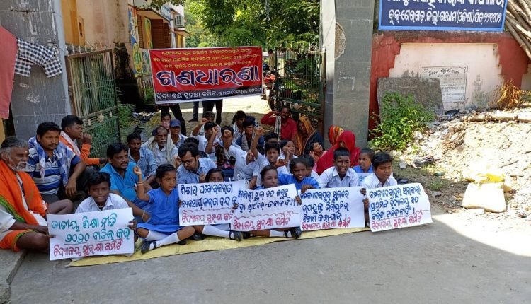 ପ୍ରାଥମିକ ସ୍କୁଲ ବନ୍ଦ- ମିଶ୍ରଣ ନିଷ୍ପତ୍ତି ବାତିଲ କରି ତୁରନ୍ତ ନାମଲେଖା ଆରମ୍ଭ କରିବା ଦାବିରେ ଶୋଭାଯାତ୍ରା ଓ ଗଣଧାରଣା ।