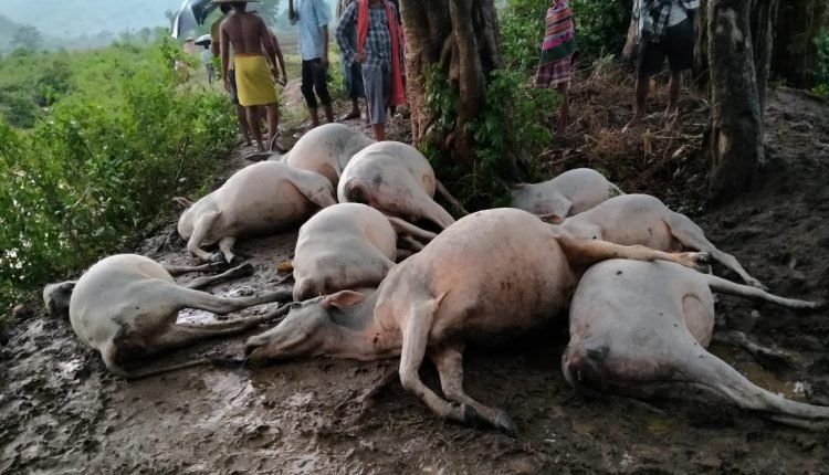 ଦିଗପହଣ୍ଡି,(ପିପିଟି)୦୬/୦୬,ଭ୍ରମରପୁର ପଞ୍ଚାୟତ ଅନ୍ତର୍ଗତ ଗୋପୀନାଥପୁର ଗ୍ରାମରେ ଶନିବାର ଅପରାହ୍ନରେ ଘଡ଼ଘଡ଼ି ବର୍ଷା ସହ ବଜ୍ରପାତ ମାଡରେ ୭ ଟି ଗାଇ ସମେତ ୨ ଟି ବାଛୁରୀର ମୃତ୍ୟୁ ଘଟିଥିବା ଜଣାପଡିଛି । ଖବରନୁଯାୟୀ , ଶନିବାର ଦିନ ଗୋପୀନାଥପୁର ଗ୍ରାମର ପୂର୍ଣ୍ଣ ନାଇକ ନାମକ ଜଣେ ଯୁବକ ନିଜର ଗାଈମାନଙ୍କୁ ସବୁଦିନ ଭଳି ଗ୍ରାମ ନିକଟସ୍ଥ ଖୋଲା ପଡ଼ିଆକୁ ଚରାଇବାକୁ ନେଇଥିଲେ । କିନ୍ତୁ ହଠାତ ଅପରାହ୍ନରେ ଆକାଶରେ କଳା ବାଦଲ ଘୋଟି ଆସି ପ୍ରବଳ ବର୍ଷା ସହ ବଡବଡ ଘଡଘଡି ମାରିଥିଲା । ପୂର୍ଣ୍ଣ ନିଜ ପରିବାର ପେଟ ପୋଷଣ କରୁଥିବା ଗାଇପଲକୁ ବର୍ଷା ଦାଉରୁ ରକ୍ଷା କରିବା ପାଇଁ ଏକ ଗଛ ମୂଳକୁ ନେଇଯାଇଥିଲା । ଯାହାଫଳରେ କିଛି ସମୟପରେ ଏହି ବଜ୍ରପାତ ମାଡରେ ୭ ଟି ଗାଇ ସହ ୨ ବାଛୁରୀ ଘଟଣାସ୍ଥଳରେ ଟଳି ପଡ଼ିଥିଲେ । ଘଟଣାପରେ ସ୍ଥାନୀୟ ସରପଞ୍ଚ ପ୍ରତିନିଧି ମୋହନ ଶବର ଓ ଗ୍ରାମବାସୀ ପହଞ୍ଚି ଭ୍ରମରପୁର ରାଜସ୍ବ ନିରୀକ୍ଷକ ସନାତନ ରଣାଙ୍କୁ ଖବର ଦେଇଥିଲେ । ଏହା ପରେ ତହସିଲଦାର ଶ୍ରୀ ସ୍ୱାଇଁଙ୍କ ନିର୍ଦ୍ଦେଶ କ୍ରମେ ଆରଆଇ ଶ୍ରୀ ରଣା ଘଟଣାସ୍ଥଳରେ ପହଞ୍ଚି ସ୍ଥିତି ପରଖି ଥିଲେ । ତେବେ ପୂର୍ଣ୍ଣ ନିହାତି ଜଣେ ଗରିବ ହୋଇଥିବା ଯୋଗୁଁ ମୃତ୍ୟୁବରଣ କରିଥିବା ଗାଈମାନଙ୍କ ଆକଳନ କ୍ଷତି ଦେବା ସହ ସରକାରୀ ସହାୟତା ପ୍ରଦାନ କରିବା ପାଇଁ ସରପଞ୍ଚ ଓ ଗ୍ରାମବାସୀ ଦାବି କରିଛନ୍ତି ।