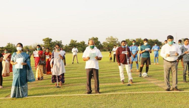 ଯାଜପୁର,(ପିପିଟି ନ୍ଯୁଜ୍)୩୦/୦୫, ଓଡିଶା ର ମୁଖ୍ୟମନ୍ତ୍ରୀ ନବୀନ ପଟ୍ଟନାୟକଙ୍କ ଆହ୍ୱାନ କ୍ରମେ ଯାଜପୁର ଜିଲ୍ଲା ଧର୍ମଶାଳା ବିଧାୟକ ପ୍ରଣବ କୁମାର ବଲବନ୍ତରାୟ ନେତୃତ୍ୱରେ ଜାରକା ସ୍ଥିତ କଳ୍ପତରୁ ଦାସ ମିନି ଷ୍ଟାଡିୟମ ଠାରେ ଉତ୍କଳ ବନ୍ଦନା ବନ୍ଦେ ଉତ୍କଳ ଜନନୀ ଗାନ କରି କରୋନା ଯୋଦ୍ଧା ମାନଙ୍କୁ ସମ୍ମାନ ଜଣାଇଛନ୍ତି