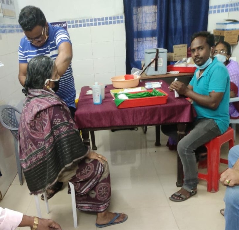 ଭଞ୍ଜନଗର,୦୧/୦୩(ପିପିଟି);ଭଞ୍ଜନଗର ଉପଖଣ୍ଡ ଡାକ୍ତରଖାନାରେ ସୋମବାର ବରିଷ୍ଠ ନାଗରିକ ମାନଙ୍କୁ ପ୍ରଥମ ପର୍ଯ୍ୟାୟ କରୋନା ଟୀକା ପ୍ରଦାନ କରାଯାଇଛି।ପ୍ରଥମ ଦିବସ ଯୋଗୁଁ ଟିକିଏ ବିଳମ୍ବରେ ଟୀକାଦାନ କାର୍ଯ୍ୟ ଆରମ୍ଭ ହୋଇଥିଲା।ଆଜିର ପ୍ରଥମ ଟୀକା ଭଞ୍ଜନଗର ମାଲ ସାହିରେ ରହୁଥିବା ବରିଷ୍ଠ ଆଇନଜୀବୀ ବୈଦ୍ୟନାଥ ସାହୁଙ୍କୁ ଦିଆଯାଇଛି। ଆଜି ଦିନରେ ମୋଟ ୫୫ଜଣ ବରିଷ୍ଠ ନାଗରିକଙ୍କୁ ଏହି ଟୀକା ଦିଆଯାଇଛି।ଟୀକା ନେବା ପାଇଁ ସମସ୍ତଙ୍କ ମନରେ ଏକ ପ୍ରକାର ଉତ୍କଣ୍ଠା ପରିଲକ୍ଷିତ ହୋଇଛି। ଏହି କାର୍ଯ୍ୟକ୍ରମରେ ଭଞ୍ଜନଗର ମେଡିକାଲର ବହୁ ସ୍ୱାସ୍ଥ୍ୟକର୍ମୀ ପଞ୍ଜିକରଣ ଠାରୁ ଟୀକାଦାନ ପର୍ଯ୍ୟନ୍ତ ସମସ୍ତ କାର୍ଯ୍ୟ ରେ ବରିଷ୍ଠ ନାଗରିକ ମାନଙ୍କୁ ସହଯୋଗ କରିଥିଲେ।