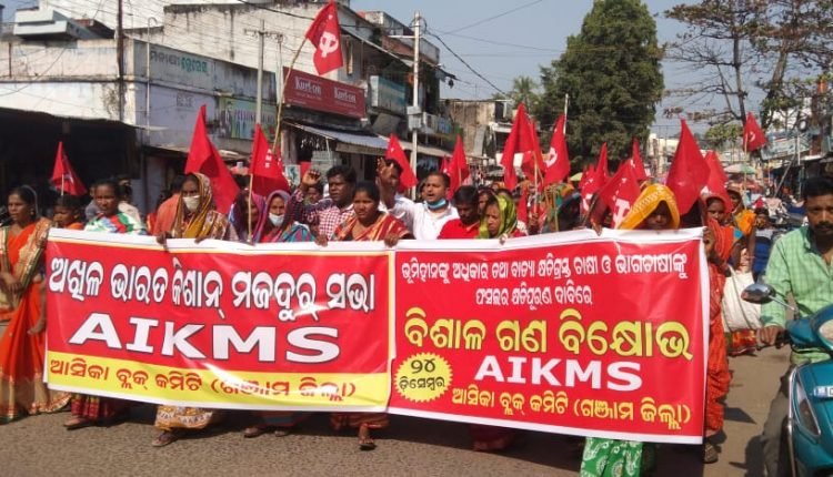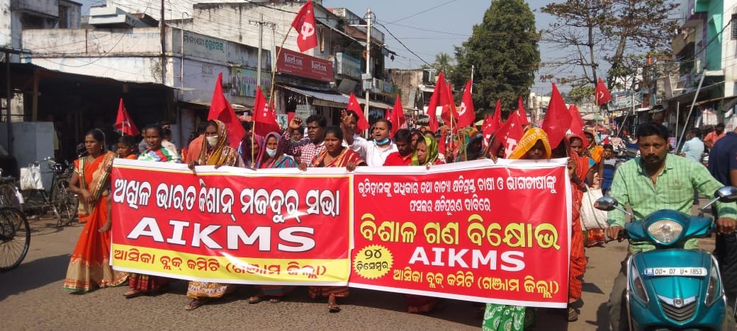 ଆସିକା,୨୪/୧୨(ପିପିଟି): ଗଞ୍ଜାମ ଜ଼ିଲ୍ଲା ଆସିକା ତହସିଲ କାର୍ଯ୍ୟଳୟ ସମୁଖରେ ଅଖିଳ ଭାରତ କିଶାନ୍ ମଜଦୂର ସଭା ତରଫରୁ ଏକ ଶୋଭାଯାତ୍ରା ଓ ବିକ୍ଷୋଭ ପ୍ରଦର୍ଶନ କରାଯାଇଥିଲା । ପୂର୍ବାହ୍ନରେ ବସଷ୍ଟାଣ୍ଡ ଠାରୁ ଭୂମହୀନ ଗରିବ ଓ ଭାଗ ଚାଷୀମାନଙ୍କ ଏକ ଶୋଭାଯାତ୍ରା ବାହାରି ସହର ପରିକ୍ରମା କରି ତହସିଲ କାର୍ଯ୍ୟାଳୟକୁ ଯିବା ସହ ସେଠାରେ ବିକ୍ଷୋଭ କରାଯାଇଥିଲା । ଆସିକା ତହସିଲର ଭୂମିହୀନ ଓ ଗୃହହୀନ ଲୋକଙ୍କୁ ଜମି ପଟ୍ଟା ଦେବା, ଲଗାଣ ବର୍ଷାରେ ହୋଇଥିବା ଫସଲ କ୍ଷତିର ଆକଳନ କରି ସମସ୍ତ ଚାଷୀ ଓ ଭାଗଚାଷୀଙ୍କୁ କ୍ଷତିପୂରଣ ପ୍ରଦାନ କରିବା, ଗାଁର ଶ୍ରମିକମାନଙ୍କୁ ମନରେଗା ଯୋଜନାରେ ୧୦୦ ଦିନିଆ କାମ ଯୋଗାଇବା, ବ୍ଳକର ଦଳିତ ବସ୍ତିମାନଙ୍କୁ ସବୁଦିନିଆ ରାସ୍ତା, ପିଇବା ପାଣି ଯୋଗାଇବା ଆଦି ଦାବି ନେଇ ଏକ ସ୍ମାରକପତ୍ର ତହସିଲଦାରଙ୍କୁ ପ୍ରଦାନ କରାଯାଇଥିଲା । ତହସିଲଦାର ସଞ୍ଜୟ କୁମାର ସାମନ୍ତରା ସଂଗଠନର ପ୍ରତିନିଧିମାନଙ୍କ ସହ ଆଲୋଚନା କରି ଆସନ୍ତା ଦୁଇ ତିନି ମାସ ମଧ୍ୟରେ ତଦନ୍ତ କରି ଭୂମହୀନ ଓ ଗୃହହୀନମାନଙ୍କୁ ପଟ୍ଟା ଦେବାକୁ ପ୍ରତିଶ୍ରୁତି ଦେଇଥିଲେ ।ଏଆଇକେମଏସର ବ୍ଳକ୍ ସମ୍ପାଦକ ସନ୍ତୋଷ ନାୟକଙ୍କ ସଞ୍ଚାଳନରେ ଅନୁଷ୍ଠିତ ଏହି କାର୍ଯ୍ୟକ୍ରମରେ ସଂଗଠନର ରାଜ୍ୟ ସମ୍ପାଦକ ପ୍ରତାପ କୁମାର ନାୟକ, ଜାତୀୟ ସମ୍ପାଦକ ଭାଲଚନ୍ଦ୍ର ଷଡ଼ଙ୍ଗୀ, ଆଇଏଫଟିୟୁ ଆବାହକ ପ୍ରତାପ ଚନ୍ଦ୍ର ପ୍ରଧାନ, ସନ୍ତୋଷ ପ୍ରଧାନ ପ୍ରମୁଖ ଯୋଗଦେଇ ବ୍ଳକର ଗରିବ ଭୂମହୀନ ଓ ଭାଗଚଷୀଙ୍କ ସମସ୍ୟାର ସମାଧାନ ପାଇଁ ଦାବି କରିଥିଲେ । ଅନ୍ୟମାନଙ୍କ ମଧ୍ୟରେ ଯୁବନେତା ପୂର୍ଣ୍ଣଚନ୍ଦ୍ର ନାୟକ, ବିପିନ ନାୟକ, ବଳରାମ, ବିଜୟ ନାୟକ ପ୍ରମୁଖ ଅଂଶ ଗ୍ରହଣ କରିଥିଲେ । ଆଜିର କାର୍ଯ୍ୟକ୍ରମରେ ବ୍ଳକର ବିଭିନ୍ନ ପଞ୍ଚାୟତରୁ ଶହ ଶହ ଗରିବ ଲୋକ ଯୋଗ ଦେଇଥିଲେ ।