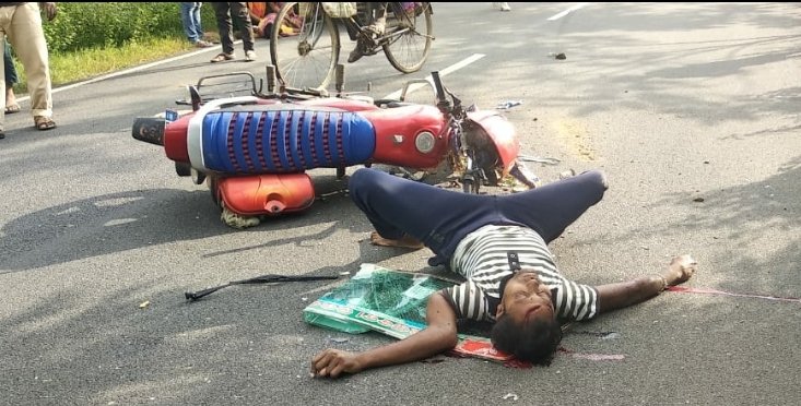 ଭଞ୍ଜନଗର,୦୧/୧୦(ପିପିଟି); ଭଞ୍ଜନଗର ବ୍ଲକ କୁଲାଡ଼ ଗ୍ରାମର ବିଷ୍ଣୁ ଦାଶ(୪୨) ଆଜି ଅପରାହ୍ନ ୪ଟା ସମୟରେ କୌଣସି କାମରେ ଭଞ୍ଜନଗର ଆସୁଥିବା ବେଳେ ବେତାର ଗ୍ରାମ ନିକଟରେ ସାମ୍ନା ପଟୁ ଆସୁଥିବା ଏକ ଅଟୋ ସହ ତାଙ୍କ ବାଇକ ଧକ୍କା ହୋଇଥିଲା। ବାଇକରୁ ପଡ଼ି ବିଷ୍ଣୁ ଗୁରୁତର ଆହତ ହୋଇଥିଲେ । ତାଙ୍କୁ ପ୍ରଥମେ ଭଞ୍ଜନଗର ଓ ପରେ ବ୍ରହ୍ମପୁର ମେଡିକାଲ କୁ ଚିକିତ୍ସା ପାଇଁ ପଠାଯାଇଛି। (ରିପୋର୍ଟ – ଜୟକୃଷ୍ଣ ପଟ୍ଟନାୟକ ।)