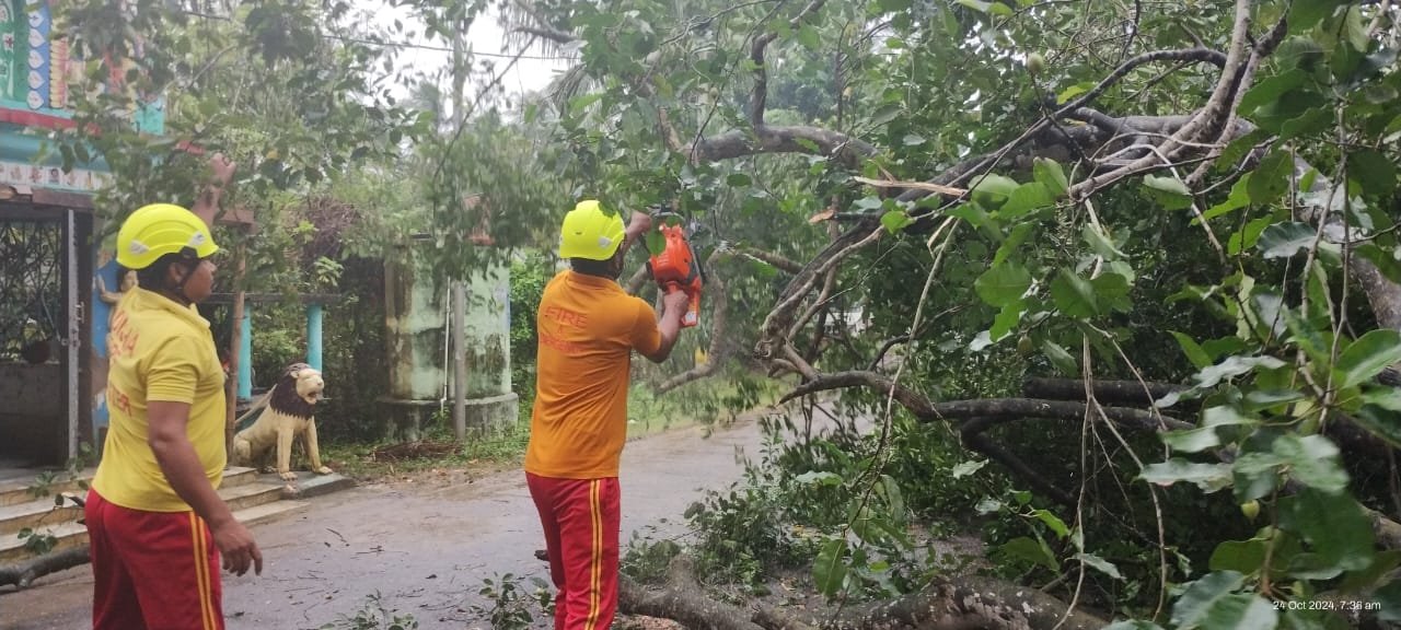 ଅମର୍ଦ୍ଦାରୋଡ଼,୨୪/୧୦: ବାତ୍ୟା ‘ଦାନା’ ପ୍ରଭାବରେ ରାଜ୍ୟର ଉପକୂଳବର୍ତ୍ତୀ ଜିଲା ଗୁଡ଼ିକରେ ଆଂଶିକ ପବନ ସହ ବର୍ଷା ଲାଗିରହିଛି । ବାଲେଶ୍ବର ଜିଲାର ଅଧିକାଂଶ ସ୍ଥାନରେ ବୁଧବାର ଅପରାହ୍ଣ ଠାରୁ ବର୍ଷା ଆରମ୍ଭ ହୋଇଛି।ତେବେ ବର୍ଷା ଲାଗିରହିବାରୁ ବସ୍ତା ବ୍ଲକ୍ ଅନ୍ତର୍ଗତ ଦରଡ଼ା-ସାହାଡ଼ା ରାସ୍ତାର ବୃନ୍ଦାବନପୁର ରାଧାକୃଷ୍ଣ ମନ୍ଦିର ସମୁଖରେ ଶହେରୁ ଉର୍ଦ୍ଧ୍ବ ବର୍ଷ ଧରି ଥିବା ଏକ ବିଶାଳକାୟ ବଉଳ ଗଛର ମୂଳ ଦୁର୍ବଳ ହୋଇଯିବାରୁ ଗତକାଲି ବିଳମ୍ବିତ ରାତିରେ ତାହା ରାସ୍ତା ଉପରକୁ ଓଲଟି ପଡ଼ିଥିଲା।ଫଳରେ ଯାତାୟାତ ବାଧାପ୍ରାପ୍ତ ହୋଇଥିଲା। ଗ୍ରାମବାସୀଙ୍କ ଠାରୁ ଖବର ପାଇ ବସ୍ତା ଅଗ୍ନିଶମ ବାହିନୀ କେନ୍ଦ୍ରାଧିକାରୀ ପ୍ରତାପ ପାଳ ଆଜି ସକାଳୁ ସଦଳବଳେ ସେଠାରେ ପହଞ୍ଚି କଟର ମେସିନ ସହାୟତାରେ ଗଛଟିକୁ ଖଣ୍ଡ ଖଣ୍ଡ କରି କାଟିଥିଲେ। ୪ଘଣ୍ଟାର ଅକ୍ଳାନ୍ତ ପରିଶ୍ରମ ପରେ ଉକ୍ତ ରାସ୍ତା ଦେଇ ଯାତାୟାତ ପୁନର୍ବାର ସ୍ବାଭାବିକ ହୋଇଥିଲା।