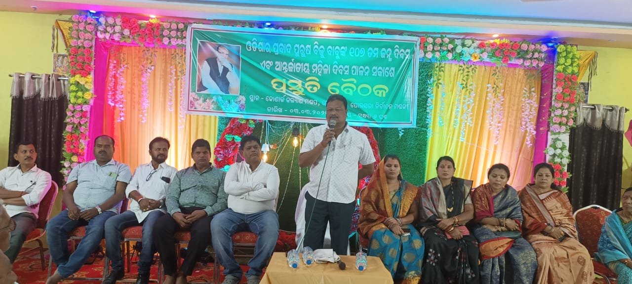 ବ୍ରହ୍ମପୁର,୦୩/୦୩(ପିପିଟି):ପୋଲସରା କୋଣାର୍କ କଲ୍ୟାଣ ମଣ୍ଡପ ଠାରେ ପୋଲସରା ରେ ଆସନ୍ତା ୫ ତାରିଖ ଦିନ ପାଳନ ହେବାକୁ ଥିବା ବିଜୁ ବାବୁଙ୍କ ୧୦୮ ତମ ଜନ୍ମ ଜୟନ୍ତୀ ଏବଂ ଆସନ୍ତା ୧୧ ତାରିଖ ଦିନ ପାଳନ ହେବାକୁ ଥିବା ଆନ୍ତର୍ଜାତୀୟ ମହିଳା ଦିବସ ପାଇଁ ପ୍ରସ୍ତୁତି ବୈଠକ ଅନୁଷ୍ଠିତ ହୋଇଯାଇଛି। ଶ୍ରମ ମନ୍ତ୍ରୀ ଶ୍ରୀକାନ୍ତ ସାହୁ ଯୋଗ ଦେଇଛନ୍ତି। ବିଜୁ ଜନତା ଦଳର କର୍ମକର୍ତ୍ତା ମାନେ ଉପସ୍ଥିତ ଥିଲେ।