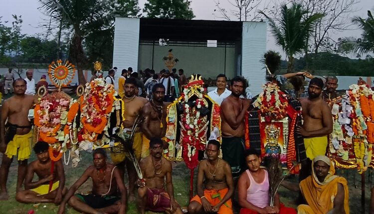 ବେଲଗୁଣ୍ଠା, ୦୩/୦୪(ପିପିଟି ):ଆଜି ବେଲଗୁଣ୍ଠା ବ୍ଳକ୍ ବିଞ୍ଚଣା ଗ୍ରାମରେ ମହାସମାରୋହରେ ଅନୁଷ୍ଠିତ ହୋଇଛି ପଞ୍ଚଶମ୍ଭୁ ଏବଂ ପାଞ୍ଚ କାଳୀଙ୍କ ମହାମିଳନ । ଏହି ମହାମିଳନରେ ଗୋବରା, ଡେଙ୍ଗାପଦର,ବେଲଗୁଣ୍ଠା-୧,ବେଲଗୁଣ୍ଠା-୨ ଏବଂ ଗାମୁଣ୍ଡି ଗ୍ରାମର ଦଣ୍ଡଦଳ ଅଂଶଗ୍ରହଣ କରିଥିଲେ । ପୂର୍ବ ପ୍ରସ୍ତୁତି ମୁତାବକ ଆଜି ସକାଳ ସାତ ଘଣ୍ଟା ସମୟରେ ସଂକୀର୍ତ୍ତନ ମଣ୍ଡଳୀ,ଯାତ୍ରା କମିଟି ଏବଂ ଗ୍ରାମର ମାନ୍ୟଗଣ୍ୟ ବ୍ୟକ୍ତି ସମସ୍ତ ପାଞ୍ଚୋଟି ଦଣ୍ଡ ଦଳକୁ ଫୁଲ ଚନ୍ଦନ ଦେଇ ବରଣ କରିଥିଲେ । ସମସ୍ତ ଦଣ୍ଡଦଳ ସେମାନଙ୍କ ପାଇଁ ଉଦ୍ଦିଷ୍ଟ ବିଶ୍ରାମ ସ୍ଥଳରେ ଠାକୁରଙ୍କର ସକାଳ ନୀତିକାନ୍ତି ସମାପ୍ତ କରିବା ପରେ ସକାଳ ୧୦:୪୫ ଠାରୁ ୦୧:୧୫ ପର୍ଯ୍ଯନ୍ତ ମୁଖ୍ୟ ସଡ଼କ,ବିଷୋୟୀ ସାହି, ଧୋବା ସାହି, ମନ୍ଦିର ପାଖ ଏବଂ ମନ୍ଦିର ସାମ୍ନାରେ ଧୂଳି ଦଣ୍ଡ ପରିବେଷଣ କରିଥିଲେ । ପରେ ଅପରାହ୍ଣ ୧:୧୫ ଠାରୁ ୩:୦୦ ପର୍ଯ୍ୟନ୍ତ ଗ୍ରାମର ମାଆ ସନ୍ତୋଷୀ ମନ୍ଦିର ନିକଟରେ ଥିବା ପୋଖରୀରେ ପାଣିଦଣ୍ଡ ନୀତି ସମାପନ କରିଥିଲେ । ପୋଖରୀରୁ ଫେରି ଗ୍ରାମ ପରିକ୍ରମା କରିବା ପରେ ପଞ୍ଚ ଶମ୍ଭୁ ମହା ମିଳନ ପାଇଁ ଉଦ୍ଦିଷ୍ଟ ସ୍ଥାନ ସରସ୍ଵତୀ ମଡ଼େଲ୍ ସ୍କୁଲ୍ ପରିସରରେ ସମସ୍ତ ଦଣ୍ଡ ଦଳ ପହଞ୍ଚିବା ପରେ ଅପରାହ୍ଣ ୦୫:୩୦ ସମୟରେ ପଞ୍ଚ ଶମ୍ଭୁ ଏବଂ ପଞ୍ଚ କାଳୀଙ୍କର ମହା ମିଳନ ଅନୁଷ୍ଠିତ ହୋଇଥିଲା । ଆଜି ଅନୁକୂଳ ପାଗ ଥିବାରୁ ପଞ୍ଚ ଶମ୍ଭୁଙ୍କ ମହା ମିଳନ ଦେଖିବା ପାଇଁ ବିଞ୍ଚଣା ଗ୍ରାମରେ ଲକ୍ଷାଧିକ ଭକ୍ତଙ୍କ ସମାଗମ ହୋଇଥିଲା । ବିଞ୍ଚଣା ଗ୍ରାମ ସମେତ ମୁଖ୍ୟ ସଡ଼କ ଏବଂ ସରସ୍ଵତୀ ମଡ଼େଲ୍ ସ୍କୁଲ୍ ପରିସର ଲୋକାରଣ୍ୟ ହୋଇ ଉଠିଥିଲା । ପଞ୍ଚଶମ୍ଭୁ ମହା ମିଳନ ପରେ ସନ୍ଧ୍ୟା ସାତ ଘଣ୍ଟା ସମୟରେ ଠାକୁରଙ୍କର ଆଳତି ଅନୁଷ୍ଠିତ ହୋଇଥିଲା । ହଜାର ହଜାର ଶ୍ରଦ୍ଧାଳୁ ଠାକୁରଙ୍କର ସନ୍ଧ୍ୟା ଆଳତି ଦର୍ଶନ କରିଥିଲେ । ଯାତ୍ରା କମିଟିର ସୂଚନା ପ୍ରକାରେ ରାତ୍ର ଏଗାର ଘଣ୍ଟା ସମୟରେ ପ୍ରସାଦ ସେବନ କାର୍ଯ୍ୟକ୍ରମ ଅନୁଷ୍ଠିତ ହେବା ପରେ ମଧ୍ୟରାତ୍ର ବାର ଘଣ୍ଟା ସମୟରେ ସମସ୍ତ ଦଣ୍ଡଦଳ ନିର୍ଦ୍ଧାରିତ ସ୍ଥାନରେ ପାରମ୍ପରିକ ଭାରତଲୀଳା ନାଟକ ପରିବେଷଣ କରିବେ । ଶନିବାର ସକାଳ ଛଅ ଘଣ୍ଟା ସମୟରେ ନାଟକ ଉଦଯାପିତ ହେବ । ଶ୍ରଦ୍ଧାଳୁଙ୍କ ଭିଡ଼କୁ ଦୃଷ୍ଟିରେ ରଖି ଗ୍ରାମରେ ପାନୀୟ ଜଳ, ପ୍ରାଥମିକ ଚିକିତ୍ସା କେନ୍ଦ୍ର,ସ୍ଵଚ୍ଛତା ସହିତ ସୂଚନା କେନ୍ଦ୍ରର ବ୍ୟବସ୍ଥା କରାଯାଇଥିଲା । ଶୃଙ୍ଖଳା ରକ୍ଷା,ଭିଡ଼ ନିୟନ୍ତ୍ରଣ, ଟ୍ରାଫିକ ନିୟନ୍ତ୍ରଣ ଦିଗରେ ଗାଙ୍ଗପୁର ଥାନା ଅଧିକାରୀ ବନବିହାରୀ ପ୍ରଧାନଙ୍କ ତତ୍ତ୍ୱାବଧାନରେ ପୋଲିସ୍ ବାହିନୀ ସମ୍ପୂର୍ଣ୍ଣ ସଜାଗ ଥିଲେ । ଗ୍ରାମର ଯୁବ ସ୍ଵେଚ୍ଛାସେବୀ,ଯାତ୍ରା କମିଟି ଏବଂ ଗ୍ରାମବାସୀ କାର୍ଯ୍ୟକ୍ରମରେ ସମ୍ପୂର୍ଣ୍ଣ ସହଯୋଗ କରିଥିଲେ ।