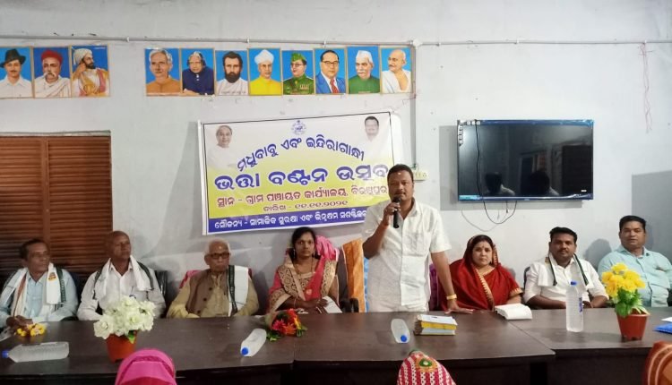 ବୁଗୁଡା,୧୧/୧୧(ପିପିଟି):ବୁଗୁଡା ବ୍ଲକ ଅନ୍ତର୍ଗତ ଗୋଲିଆ, ଭାମଶ୍ୟାଳି, ବିରଞ୍ଚିପୁର ଓ ବି. କରଡାବାଡ଼ି ଚାରି ଗୋଟି ଗ୍ରାମ ପଞ୍ଚାୟତକୁ ଯାଇ ବିଧାୟକ ଶ୍ରୀକାନ୍ତ ସାହୁ ବୃଦ୍ଧ, ବୃଦ୍ଧା, ଭିନ୍ନକ୍ଷମ ଓ ବିଧବା ମହିଳା ମାନଙ୍କୁ ଭତ୍ତା ବଣ୍ଟନ କରିବା ସହ ବିଜୁ ଜନତା ଦଳର ସଙ୍ଗଠନକୁ ସୁଦୃଢ଼ କରିବା ପାଇଁ କର୍ମୀଙ୍କ ସହ ଆଲୋଚନା କରିଛନ୍ତି ।