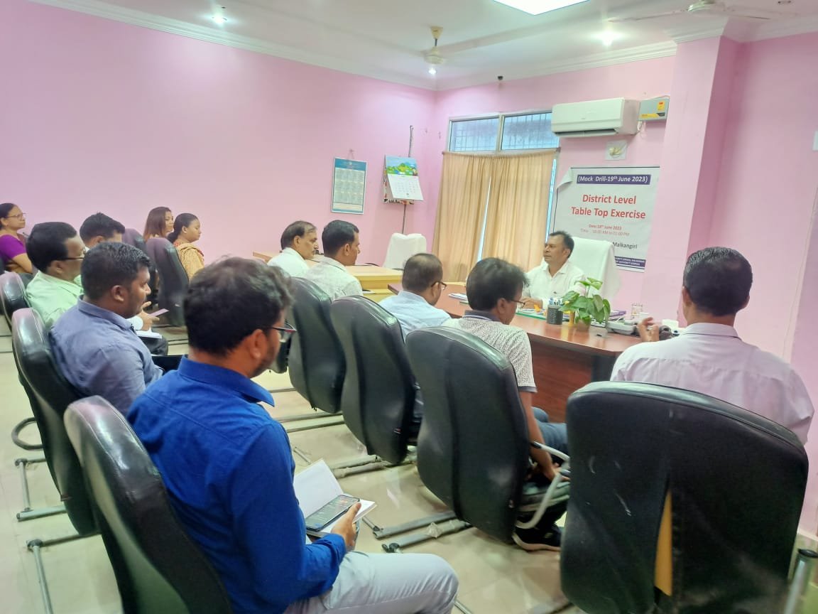 ଭାରତୀୟ ପାଣିପାଗ କେନ୍ଦ୍ରଙ୍କ ସୂଚନା ଅନୁସାରେ ବଙ୍ଗୋପ ସାଗରରେ ଏକ ଘୁର୍ଣିଝଡ ଆସନ୍ତା ୪୮ ଘଣ୍ଟା ରେ କେନ୍ଦ୍ରୀଭୂତ ହେବାର ଆଶଙ୍କା ରହିଛି । ଏହାର ପ୍ରଭାବରେ ଜିଲ୍ଲାରେ ପବନ ସହିତ ଭୀଷଣ ବର୍ଷ ହେବାର ସମ୍ଭାବନା ରହିଛି । ଏହି ସୂଚନାକୁ ଦୃଷ୍ଟିରେ ରଖି ସମସ୍ତ ଜିଲ୍ଲାରେ ପ୍ରସ୍ତୁତି କେମିତି ରହିବ, ତା’ଉପରେ ସମସ୍ତ ଜିଲ୍ଲା ସ୍ତରୀୟ ଅଧିକାରୀ ମାନେ ନିଜ ନିଜର ପ୍ରସ୍ତୁତି ଉପସ୍ଥାପନ କରିଥିଲେ । ପ୍ରସ୍ତୁତିରେ ବିଭିନ୍ନ ସୋପାନ ଯେମିତିକି ବିପର୍ଯ୍ୟୟ ପ୍ରାକ ପ୍ରସ୍ତୁତି,ବିପର୍ଯ୍ୟୟ ସମୟରେ ପ୍ରସ୍ତୁତି ଓ ବିପର୍ଯ୍ୟୟ ପରେ ପ୍ରସ୍ତୁତି ବିଷୟରେ ଆଲୋଚନା ହୋଇଥିଲା। ମାଲକାନଗିରି, ବାଲିମେଳା ଏନଏସି, ମାଥିଲି, ଖଇରପୁଟ, ପଡ଼ିଆ, ଖଇରପୁଟ, କୋରୁକୋଣ୍ଡା,ଚିତ୍ରକୋଣ୍ଡା, କାଲିମେଳା ଓ ମାଲକାନଗିରି ପୌର ପରିଷଦରେ ଜୁନ ୧୯ ରେ ମକ୍ ଡ୍ରିଲ ଆୟୋଜନ କରାଯିବ। ବିପର୍ଯ୍ୟୟ ପରିଚାଳନା ତାଲିମ କେନ୍ଦ୍ର, ଭୁବନେଶ୍ବରରୁ ସେକ ସରଫରାଜ ଅହମଦ ଏହାର ପର୍ଯ୍ୟବେକ୍ଷଣ ନିମନ୍ତେ ଜିଲ୍ଲା ଗସ୍ତ କରିଛନ୍ତି।