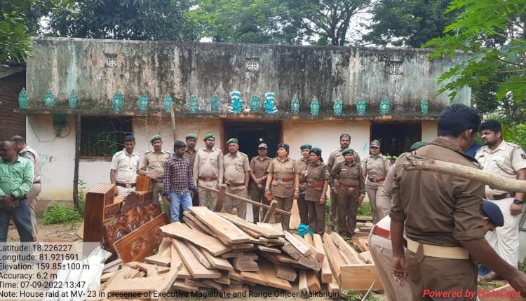 ମାଲକାନଗିରି ବନାଞ୍ଚଳ ଅଧିକାରୀ ଜଗନ୍ନାଥ ପ୍ରସାଦ ବିଷୋୟୀଙ୍କ ନେତୃତ୍ବରେ ଆଜି କୋରୁକୋଣ୍ଡା ବ୍ଲକ ଅନ୍ତର୍ଗତ ମାରିୱାଡା ପଞ୍ଚାୟତର ଏମଭି-୨୩ ଗ୍ରାମରେ ସକାଳେ ଗୌର ବାଚାର(୩୬)ଙ୍କ ଘରେ ଶାଗୁଆ ଏବଂ ପିଆଶାଳ ଆଦି ମୂଲ୍ଯବାନ କାଠ ପଟା ରହିଥିବା ବିଶ୍ବସ୍ଥ ସୂତ୍ରରୁ ସୂଚନା ପାଇ ବନ କର୍ମଚାରୀମାନେ ଚଢାଉ କରିଥିଲେ । ଫଳରେ ବିପୁଳ ପରିମାଣର କାଠ ପଟା ଏବଂ ସାଇଜ ଜବତ କରିବା ସହ ଆସାମୀ. ଗୌର ବାଛାରକୁ ଗିରଫ କରାଯାଇଥିଲା । ଏହି ଜବତ ପଟା ୪୫ ଘନ ଫୁଟ କାଠ ହେବ ଏବଂ ଏହାର ମୂଲ୍ଯ ଦେଢ ଲକ୍ଷ ଟଙ୍କା ହେବ ବୋଲି କୁହାଯାଇଛି । ଏହି ଚଢାଉ ବେଳେ କାର୍ଯ୍ଯନିର୍ବାହୀ ଦଣ୍ଡଧାରୀ ଭାବେ ମାଲକାନଗିରି ତହସିଲଦାର ରାଖେଲ ଚନ୍ଦ୍ର ପରିଡା ଉପସ୍ଥିତ ଥିଲେ । ଏହି ଚଢାଉରେ ବନପାଳ ରାଜେଶ କୁମାର ସେଠୀ, ଦେବାଶିଷ ପ୍ରଧାନ ମନତୋଷ ଦେ,ଫରେଷ୍ଟ ଗାର୍ଡ ସାରୁ କୱାସୀ, ପାରାଷ୍ଟାଫ ଶିବ ପିରସାଦ ବିଶ୍ବାସ, ଗୋବିନ୍ଦ ମାଳି,ସ୍କ୍ବାର୍ଡ ମଧୁ ପାଙ୍ଗି, ହରିଶ୍ଚନ୍ଦ୍ର ଗାମେଲ୍ ପ୍ରମୁଖ ଯୋଗ ଦେଇଥିଲେ ।
