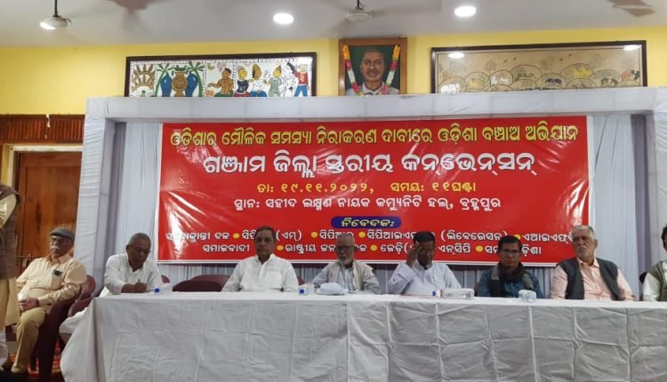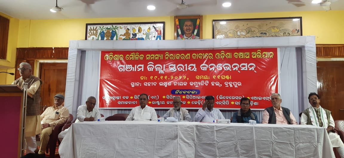 ବ୍ରହ୍ମପୁର,୧୯/୧୧(ପିପିଟି):ସାଧାରଣ ଲୋକଙ୍କ ଜନଜୀବନକୁ ପ୍ରଭାବିତ କରୁଥିବା ମୌଳିକ ସମସ୍ଯାର ନିରାକରଣ ପାଇଁ ରାଜ୍ଯର ୧୧ଟି ରାଜନୈତିକ ଦଳ ପକ୍ଷରୁ ଓଡିଶା ବଞ୍ଚାଅ ଅଭିଯାନ ମଞ୍ଚ ଗଠନ କରାଯାଇଛି। ଏହି ମଞ୍ଚର ଆବାହକ ପୂର୍ବତନ କେନ୍ଦ୍ର ମନ୍ତ୍ରୀ ବ୍ରଜ ତ୍ରିପାଠୀ ରହିଛନ୍ତି। ୩୪ ଦଫା ଦାବିରେ ଆନ୍ଦୋଳନ ଆରମ୍ଭ ହେବ। ବ୍ରହ୍ମପୁରରୁ ଓଡ଼ିଶା ବଞ୍ଚାଅ ଅଭିଯାନ ଆରମ୍ଭ ହୋଇଛି। ଓଡ଼ିଶାର ମୌଳିକ ସମସ୍ଯାର ନିରାକରଣ ପାଇଁ ଆନ୍ଦୋଳନ ସକାଶେ ବ୍ରହ୍ମପୁରରୁ କାର୍ଯ୍ୟକ୍ରମ ଆରମ୍ଭ ହୋଇଛି। ଓଡିଶା ବଞ୍ଚାଅ ଅଭିଯାନ ପକ୍ଷରୁ ସହୀଦ ଲକ୍ଷ୍ମଣ ନାୟକ କମ୍ଯୁନିଟ ହଲ,ବ୍ରହ୍ମପୁର ଠାରେ ଜିଲ୍ଲା ସ୍ତରୀୟ କନଭେନସନ ଅନୁଷ୍ଠିତ ହୋଇଯାଇଛି। କନଭେନସନ ପରିଚାଳନା ପାଇଁ ସିପିଏମ ନେତା କୈଳାସ ଷଢଙ୍ଗୀ, ସିପିଆଇ ଜିଲ୍ଲା ସମ୍ପାଦକ ପ୍ରକାଶ ପାତ୍ର, ଫରୱାର୍ଡ ବ୍ଲକର ଜିଲ୍ଲା ସଭାପତି ବିଭୁଧେନ୍ଦ୍ର ପାଢୀ ଓ ସମତା କ୍ରାନ୍ତୀର ନେତା ବୃନ୍ଦାବନ ବେହେରାଙ୍କୁ ନେଇ ସଭାପତି ମଣ୍ଡଳୀ ସଭାକୁ ପରିଚାଳନା କରିଥିଲେ। ଏହି କାର୍ଯ୍ୟକ୍ରମରେ ସମତା କ୍ରାନ୍ତୀର ମୁଖ୍ଯ ବ୍ରଜ ତ୍ରିପାଠୀ, ସିପିଆଇ(ଏମ୍) ରାଜ୍ଯ ସମ୍ପାଦକ ଅଳି କିଶୋର ପଟ୍ଟନାୟକ, ସିପିଆଇ ରାଜ୍ଯ ସମ୍ପାଦକ ଅଭୟ ସାହୁ, ଫରୱାର୍ଡ ବ୍ଲକ ରାଜ୍ଯ ସଭାପତି ପୂର୍ଣ୍ଣଚନ୍ଦ୍ର ପାଢୀ ଓ ଏସପି ନେତା ସୁଦର୍ଶନ ପ୍ରଧାନ ପ୍ରମୁଖ ଯୋଗ ଦେଇ ରାଜ୍ଯ ଓ କେନ୍ଦ୍ର ସରକାରଙ୍କ ଜନ ବିରୋଧି ନୀତି ଉପରେ ଆଲୋକପାତ କରିବା ସହିତ ସାଧାରଣ ଲୋକଙ୍କ ମୌଳିକ ସମସ୍ଯାକୁ ନେଇ ସାରା ଓଡ଼ିଶାରେ ସଚେତନ ଓ ଆନ୍ଦୋଳନ କରିବା ପାଇଁ ଆହ୍ବାନ ଦେଇଥିଲେ। ଆସନ୍ତା ଜାନୁୟାରୀ ୬ ତାରିଖ ଦିନ ରାଜ୍ଯ ସ୍ତରୀୟ ଗଣ ଧରାଣା ଦିଆଯିବ। ବିଭିନ୍ନ ଜିଲ୍ଲାରେ କନଭେନସନ କରି ସାଧାରଣ ଲୋକଙ୍କୁ ଏହି ଆନ୍ଦୋଳନ ସହିତି ଯୋଡାଯିବା ପାଇଁ ନିଷ୍ପତ୍ତି ନିଆଯାଇଛି।