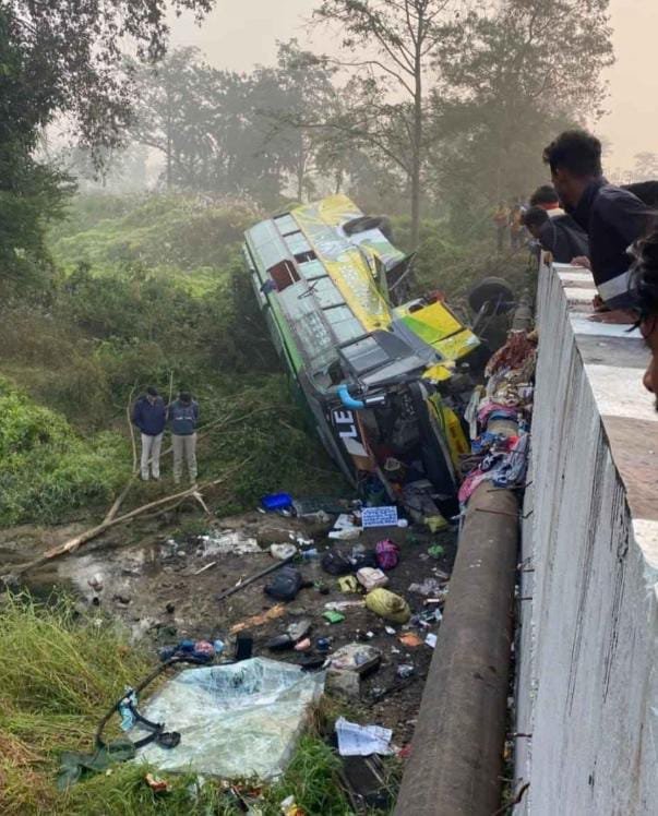 ସୁବର୍ଣ୍ଣପୁର ,୨୫/୧୧(ପିପିଟି ):ସୁବର୍ଣ୍ଣପୁର ଜିଲ୍ଲା ବିନିକା ବ୍ଲକ ସିଙ୍ଗିଯୁବା ଠାରେ ଆଜି ଭୋର ସକାଳେ ଏକ ଯାତ୍ରୀବାହୀ ବସ ରାସ୍ତାରେ ଯାଉଥିବା ବେଳେ ହଠାତ ବ୍ରିଜ ତଳକୁ ଖସି ପଡିଥିଲା ଫଳରେ ବସରେ ଥିବା ପ୍ରାୟ ୪୦ଜଣ ଯାତ୍ରୀଙ୍କ ମଧ୍ୟରୁ ୧୪ଜଣ ଗୁରୁତର ଆହତ ହୋଇଥିବା ବେଳେ ୫ଜଣଙ୍କ ଅବସ୍ଥା ଅତ୍ୟନ୍ତ ଗୁରୁତର ଥିବାରୁ ପ୍ରାଥମିକ ଚିକିତ୍ସା ପରେ ବୁର୍ଲା ସ୍ଥାନାନ୍ତରିତ କରାଯାଇଥିବା ଜଣାପଡ଼ିଛି l ଖବରରୁ ପ୍ରକାଶ ଯେ ଭୁବନେଶ୍ବରରୁ ପଦ୍ମପୁର ଦୀପ୍ତିପୁରକୁ ଯାଉଥିବା ଭୋଲାନାଥ ବସ (ଓଡି ୩୧ କେ ୯୦୯୯) ସକାଳ ସାଢେ ପାଞ୍ଚଟା ବେଳକୁ ବସଟି ସିଂହୀଯୁବା ନାଳ ବ୍ରିଜରେ ଧକ୍କା ହୋଇ ନାଳ ତଳକୁ ଓଲଟି ପଡିଥିଲା। ଗାଡ଼ି ଧକ୍କା ହୋଇ ଓଲଟି ପଡ଼ିବାର ଶଦ୍ଧ ହେବାପରେ ଆଖ ପାଖ ଲୋକେ ଘଟଣା ସ୍ଥଳକୁ ଆସି ଯାତ୍ରୀଙ୍କୁ ଉଦ୍ଧାର କରିବାରେ ଲାଗି ପଡ଼ି ଅଗ୍ନିଶମ ବିଭାଗ ଓ ପୋଲିସ ବିଭାଗ,ସ୍ୱାସ୍ଥ୍ୟ ବିଭାଗକୁ ଖବର ଦେଇଥିଲେ। ତ୍ୱରିତ ଅଗ୍ନିଶମ ବିଭାଗ କର୍ମଚାରୀ ଓ ଆମ୍ବୁଲାନ୍ସ ପହଞ୍ଚି ଯାତ୍ରୀଙ୍କୁ ଉଦ୍ଧାର କରାଯାଇ ବିନିକା ଡାକ୍ତରଖାନାରେ ଭର୍ତ୍ତି କରି ଚିକିତ୍ସା କରାଯାଇଥିଲା। ବସରେ ଯାତ୍ରୀ ସଂଖ୍ୟା ପାଖାପାଖି ଚାଳିଶ ଥିବା ବେଳେ ସେଥିରୁ ପ୍ରାୟ ୧୪ ଜଣ ଆହତ ହୋଇଛନ୍ତି। ଆହତ ମାନଙ୍କ ମଧ୍ୟରୁ ୫ଜଣଙ୍କ ଅବସ୍ଥା ଗୁରୁତର ଥିବାବେଳେ ସେମାନଙ୍କୁ ବୁର୍ଲା ମେଡିକାଲକୁ ସ୍ଥାନାନ୍ତର କରାଯାଇଛି। ବିନିକା ଡାକ୍ତରଖାନାକୁ ସୁବର୍ଣ୍ଣପୁର ଜିଲ୍ଲାପାଳ ଡ଼ ନୃପରାଜ ସାହୁ ଓ ଜିଲ୍ଲା ଆରକ୍ଷୀ ଅଧିକ୍ଷକ ନାରାୟଣ ନାୟକ ପହଞ୍ଚି ଆହତଙ୍କ ଅବସ୍ତା ଦେଖି ସମସ୍ତ ସୁବିଧା ପାଇଁ ପଦକ୍ଷେପମାନ ଗ୍ରହଣ କରି ଉତ୍ତମ ଚିକିତ୍ସା ଯୋଗାଇ ଦେବାକୁ ଡାକ୍ତରଖାନା କର୍ତୁପକ୍ଷଙ୍କୁ ନିର୍ଦ୍ଦେଶ ଦେଇଛନ୍ତି ।ଆଜି ଅତ୍ୟନ୍ତ ଘନ କୁହୁଡି ଥିବାରୁ ବୋଧେ ଏପରି ଦୁର୍ଘଟଣା ଘଟି ଥାଇପାରେ ବୋଲି ଅନୁମାନ କରାଯାଉଛି।