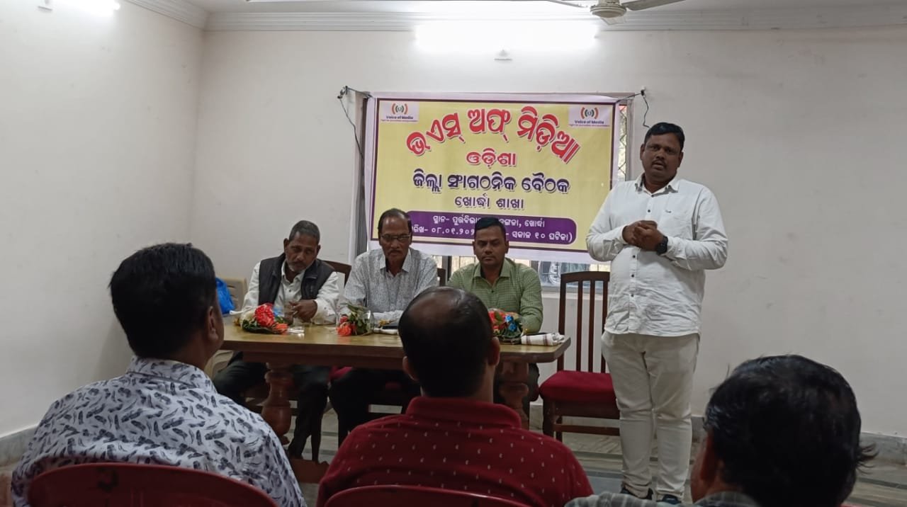 ଖୋର୍ଦ୍ଧା,୦୮।୦୧ (ପିପିଟି): ଭଏସ ଅଫ ମିଡିଆ ଖୋର୍ଦ୍ଧା ଜିଲ୍ଲାର ସାଂଗଠନିକ ବୈଠକ ସ୍ଥାନୀୟ ପୂର୍ତ୍ତ ଡାକ ବଙ୍ଗଳାରେ ଅନୁଷ୍ଠିତ ହୋଇଯାଇଛି। ରାଜ୍ଯ ସଭାପତି ପ୍ରଭାତ ମିଶ୍ର ସଭାପତିତ୍ବ କରିଥିଲେ। ଜାତୀୟ ସମ୍ପାଦକ ବରିଷ୍ଠ ସାମ୍ବାଦିକ ଇଫତାର ଅଲ୍ଲୀ ଉପସ୍ଥିତ ଥିଲେ।