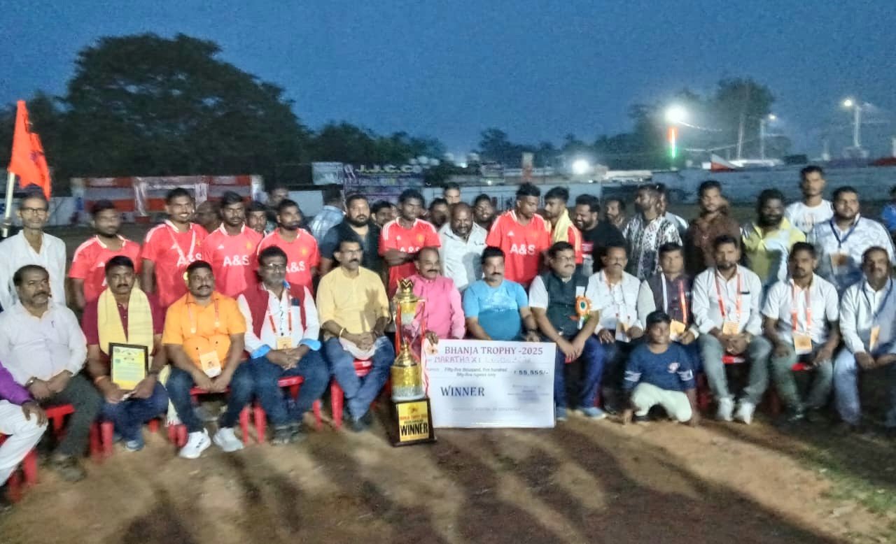 ଭଞ୍ଜନଗର, ୩୦/୧୧(ପିପିଟି ):ଭଞ୍ଜନଗର ଜେଲ୍ ପଡ଼ିଆରେ ଚାଲିଥିବା ଭଞ୍ଜ ଟ୍ରଫି-୨୦୨୫ ଅନ୍ତର୍ଜାତୀୟ ଫୁଟବଲ ଟୁର୍ଣ୍ଣାମେଣ୍ଟର ଗ୍ରାଣ୍ଡ ଫାଇନାଲ୍ ମ୍ୟାଚରେ ଆଜି ଭଞ୍ଜନଗର ମରାଠା ଏକାଦଶ ଚମ୍ପିୟନ ହୋଇଛି। ସୁନ୍ଦରଗଡ଼ ଦୋସ୍ତି ଫୁଟବଲ କ୍ଲବକୁ ୩-୧ଗୋଲରେ ଭଞ୍ଜନଗର ମରାଠା ଏକାଦଶ ପରାସ୍ତ କରିଛି।ଖେଳର ପ୍ରଥମାର୍ଦ୍ଧରେ ମରାଠା ଏକାଦଶ ୧-୦ ଗୋଲ ରେ ଆଗୁଆ ଥିଲା ଦ୍ବିତୀୟାର୍ଦ୍ଧରେ ପୁଣି ଲଗାତାର ଭାବେ ଆଉ ୨ଟି ଗୋଲ ସ୍କୋର କରିଥିଲା।ମ୍ୟାଚର ଶେଷ ସମୟରେ ସୁନ୍ଦରଗଡ଼ କେବଳ ଗୋଟିଏ ଗୋଲ ଦେବାରେ ସକ୍ଷମ ହୋଇଥିଲା।ଟୁର୍ଣ୍ଣାମେଣ୍ଟ ରେ ଶ୍ରେଷ୍ଠ ଗୋଲ କିପର ଭାବେ ସୁନ୍ଦରଗଡର ବିଷ୍ଠୁ, ଶ୍ରେଷ୍ଠ ଡିଫେଣ୍ଡର ଖେଳାଳି ମରାଠା ଏକାଦଶର ସିପୁ , ମ୍ୟାନ ଅଫ ଦି ମ୍ୟାଚ ମରାଠା ଏକାଦଶର ଜଳିଆ, ମ୍ୟାନ ଅଫ୍ ଦି ଟୁର୍ଣ୍ଣାମେଣ୍ଟ ସୁନ୍ଦରଗଡ଼ର ଆକାଶ ଓରାମଙ୍କୁ ପୁରସ୍କାର ପ୍ରଦାନ କରାଯାଇଛି।ଆଜି ମୁଖ୍ୟ ଅତିଥି ଭାବେ ଭଞ୍ଜନଗର ବିଧାୟକ ପ୍ରଦ୍ୟୁମ୍ନ କୁମାର ନାୟକ ଯୋଗଦେଇ ଚାମ୍ପିଅନ ଦଳକୁ ୫୫ ହଜାର ୫୫୫ ଟଙ୍କା ସହ ଟ୍ରଫି ପ୍ରଦାନ କରିଥିଲେ।