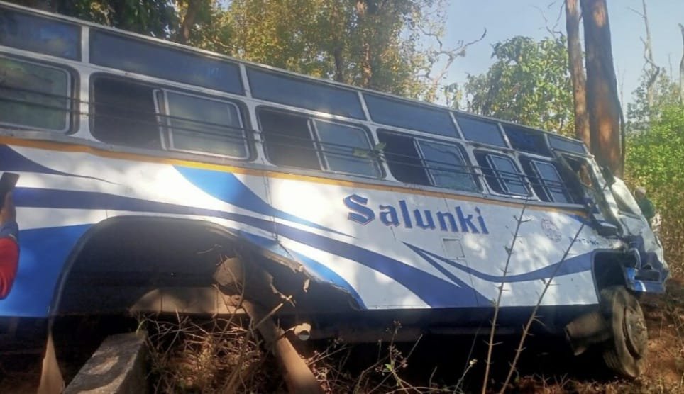 ଭାରସାମ୍ୟ ହରାଇ ରାସ୍ତା ତଳକୁ ଖସିଗଲା ଯାତ୍ରୀବାହୀ ବସ୍‌ :୩୦ରୁ ଊର୍ଦ୍ଧ୍ୱ ଯାତ୍ରୀ ଆହତ:୬ ଯାତ୍ରୀ ଗୁରୁତର ।