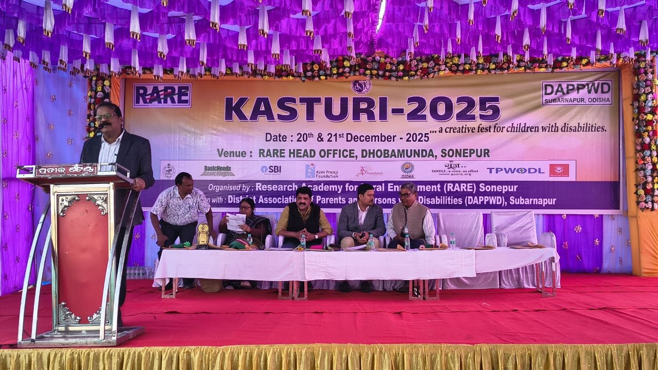 ସୁବର୍ଣ୍ଣପୁର ,୨୦/୧୨(ପିପିଟି):ସୁବର୍ଣ୍ଣପୁର ଜିଲ୍ଲା ସଦର ଧୂବାମୁଣ୍ଡା ରେଆର କାର୍ଯ୍ୟାଳୟ ଠାରେ ରେଆର ସୋନପୁର ତଥା ଜିଲ୍ଲା ଭିନ୍ନକ୍ଷମ ଅବିଭାବକ ସଂଘ ତରଫରୁ ଭିନ୍ନକ୍ଷମ ଶିଶୁ ଙ୍କ ସୃଜନାତ୍ମକ ଉତ୍ସବ କସ୍ତୁରୀ ଉଦଘାଟିତ ହୋଇଯାଇଛି ପ୍ରାରମ୍ଭ ରେ ରେଆର ପ୍ରତିଷ୍ଠାତା ସଦସ୍ୟ ଗୌରୀଶ୍ୟାମ ପଣ୍ଡା କସ୍ତୁରୀ କାର୍ଯ୍ୟକ୍ରମ ର ଲକ୍ଷ୍ୟ ଓ ଉଦେଶ୍ୟ ବିଷୟରେ ଆଲୋକପାତ କରିଥିଲେ l ବିଗତ ପନ୍ଦର ବର୍ଷ ହେବ ଏହି କାର୍ଯ୍ୟକ୍ରମ ପ୍ରତିବର୍ଷ ହେଉଥିବା ପ୍ରକାଶ କରିଥିଲେ, ମୁଖ୍ୟ ଅତିଥି ଭାବରେ ସୁବର୍ଣ୍ଣପୁର ଜିଲ୍ଲାପାଳ ଡ଼ ନୃପରାଜ ସାହୁ ଯୋଗ ଦେଇ ଭିନ୍ନକ୍ଷମ ଶିଶୁ ଙ୍କ ଭିନ୍ନ ଏକ ପ୍ରତିଭା ରହିଛ ବୋଲି ପ୍ରକାଶ କରିବା ସହ ଏହି କାର୍ଯ୍ୟକ୍ରମ ତାଙ୍କର ସୃଜନୀ ଶକ୍ତି ର ବିକାଶ ହେଉଥିବା ପ୍ରକାଶ କରିଥିଲେ, ସମ୍ମାନିତ ଅତିଥିଭାବେ ଜିଲ୍ଲା ଆଇନ ସେବା ପ୍ରାଧିକରଣ ସୁବର୍ଣ୍ଣପୁର ର ସଚିବ ଦେବାଶିଷ ଦାସ ଯୋଗ ଦେଇ ଭିନ୍ନକ୍ଷମ ଅଧିକାର କେମିତି କ୍ଷୁର୍ଣ ନ ହେବ ସେ ବିଷୟରେ ଆଇନ ସେବା ପ୍ରାଧିକରଣ ସଜାଗ ରହିଥିବା କହିଥିଲେ। ଅନ୍ୟତମ ଅତିଥିଭାବେ ବଲାଙ୍ଗୀର ଜିଲ୍ଲା ସାମାଜିକ ସୁରକ୍ଷା ଅଧିକାରୀ ମଦନଜିତ ହୋତା ଯୋଗ ଦେଇ ଏହି କାର୍ଯ୍ୟକ୍ରମ କୁ ପ୍ରଶଂସା କରିବା ସହ ସୁଯୋଗ ଦେଲେ ଭିନ୍ନକ୍ଷମ ଭାଇ, ଭଉଣୀ ମାନେ ଅନେକ ସଫଳତା ପାଇପାରିବେ ବୋଲି ପ୍ରକାଶ କରିଥିଲେ। ଅନ୍ୟତମ ଅତିଥିଭାବେ ହିମାଂଶୁ ଶେଖର ପଣ୍ଡା ଉପ ନିର୍ଦେଶକ, ପ୍ରସିକୁଶନ, ସୁବର୍ଣ୍ଣପୁର ଯୋଗ ଦେଇ ଭିନ୍ନକ୍ଷମ ମାନେ ଆମକୁ ବିଭିନ୍ନ କ୍ଷେତ୍ର ରେ ଗୌରବନ୍ୱିତ କରୁଥିବା ପ୍ରକାଶ କରିଥିଲେ। ରେଆର ଉପ ସଭାପତି ପଦ୍ମିନୀ ବକ୍ସ଼ୀ ସଭାପତିତ୍ୱ କରିଥିବାବେଳେ ସାଧାରଣ ସମ୍ପାଦକ ଅନଙ୍ଗ ନେଗୀ ସଭା ସଂଯୋଜନା କରିଥିଲେ ଶେଷରେ ମନୋଜ ସ୍ୱାଇଁ ଧନ୍ୟବାଦ ଅର୍ପଣ କରିଥିଲେ।ଏହା ପରେ ଭିନ୍ନକ୍ଷମ ଅଧିକାର ଅଧିନିୟମ ୨୦୧୬ ବିଷୟରେ ଏକ ଆଲୋଚନାଚକ୍ର ଅନୁଷ୍ଠିତ ହୋଇଥିଲା ଏହାକୁ ତରଭା ଗୋଷ୍ଠୀ ସାମାଜିକ ସୁରକ୍ଷା ଅଧିକାରୀ ପ୍ରଭାସ କୁମାର କର୍ଣ୍ଣ ପରିଚାଳନା କରିଥିଲେ ଏଥିରେ ବଲାଙ୍ଗୀର, କଳାହାଣ୍ଡି, ବୌଦ୍ଧ, ସୁବର୍ଣ୍ଣପୁର ଜିଲ୍ଲା ରୁ ଭିନ୍ନକ୍ଷମ ଶିଶୁ ଓ ସେମାନଙ୍କ ଅଭିଭାବକ ଅଂଶଗ୍ରହଣ କରିଥିଲେ ଅପରାହ୍ନ ରେ ଶିଶୁ ମାନଙ୍କୁ ବ୍ୟଙ୍ଗ ଚିତ୍ରାଙ୍କନ, ପଥର ଚିତ୍ରାଙ୍କନ, କାଗଜ କଳା ତାଲିମ୍ ପ୍ରଦାନ କରାଯାଇଥିଲା। ଏହାକୁ ପୂର୍ଣଚନ୍ଦ୍ର ମେହେର, ପ୍ରଭାସ ମେହେର, ସତ୍ୟ ମେହେର ପରିଚାଳନା କରିଥିଲେ।ଏବଂ ଧ୍ୱନି ସ୍ୱତନ୍ତ୍ର ଚଳଚିତ୍ର ପ୍ରଦର୍ଶନ କରାଯାଇଥିଲା।ସନ୍ଧ୍ୟାରେ ଶିଶୁ ମାନେ ସାଂସ୍କୃତିକ କାର୍ଯ୍ୟକ୍ରମ ପରିବେଷଣ କରିଥିଲେ।
