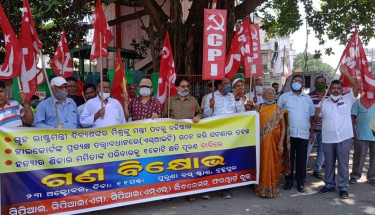 ବ୍ରହ୍ମପୁର,୨୩/୧୦(ପିପିଟି): ଓଡ଼ିଶାର ବହୁଚର୍ଚ୍ଚିତ ମମିତା ହତ୍ୟାକାଣ୍ଡର ପ୍ରତିବାଦରେ ବ୍ରହ୍ମପୁର ପୁରୁଣା ବସଷ୍ଟାଣ୍ଡ ଠାରେ ସିପିଆଇ,ସିପିଏମ ଓ ଫରୱାର୍ଡ ବ୍ଲକ ପକ୍ଷରୁ ବିକ୍ଷୋଭ ପ୍ରଦର୍ଶନ କରାଯାଇଛି । ବାମପନ୍ଥୀ ଦଳ ମାନଙ୍କ ପକ୍ଷରୁ ଦାବି କରାଯାଇଛି ଯେ,ମମିତା ମେହେର ହତ୍ୟାକାଣ୍ଡ ତଦନ୍ତର ନିରପେକ୍ଷତା ପାଇଁ ଓଡିଶାର ଗୃହ ରାଷ୍ଟ୍ରମନ୍ତ୍ରୀ ଦିବ୍ୟଶଙ୍କର ମିଶ୍ରଙ୍କୁ ମନ୍ତ୍ରୀ ମଣ୍ଡଳରୁ ତୁରନ୍ତ ବହିଷ୍କାର କର ,ଓଡିଶା ଉଚ୍ଚ ନ୍ୟାୟାଳୟର ପ୍ରତ୍ୟେକ୍ଷ ତତ୍ୱାବଧାନ ରେ ସ୍ୱତନ୍ତ୍ର ଅନୁସନ୍ଧାନକାରୀ ଦଳ (SIT) ଦ୍ୱାରା ମମିତା ହତ୍ୟାକାଣ୍ଡର ତଦନ୍ତ କର,ଦିବ୍ୟ ଶଙ୍କର ମିଶ୍ରଙ୍କୁ ଏସ ଆଇ ଟି ତଦନ୍ତ ପରିସରଭୁକ୍ତ କରାଯାଉ,ଅପରାଧୀ ମାନଙ୍କୁ ଆଇନ ଅନୁଯାୟୀ ଦୃଷ୍ଟାନ୍ତ ମୂଳକ ଶାସ୍ତି ଦିଆଯାଉ,ମମିତାଙ୍କ ପରିବାରଙ୍କୁ ଏକ କୋଟି ଟଙ୍କା ଆର୍ଥିକ ସହାୟତା ଦିଆଯାଉ । ଏହି ଆନ୍ଦୋଳନରେ ସିପିଆଇ ଜିଲ୍ଲା ସମ୍ପାଦକ ପ୍ରକାଶ ପାତ୍ର, ଏଆଇଟିୟୁସିର ରାଜ୍ଯ କାର୍ଯ୍ଯକାରୀ ସଭାପତି ପ୍ରଶାନ୍ତ କୁମାର ପାଟ୍ଟଯୋଶୀ, ସିପିଏମ ଜିଲ୍ଲା ସଂପାଦକ କୈଳାଶ ଷଢଙ୍ଗୀ,ସିପିଏମ ଜିଲ୍ଲା ସମ୍ପାଦକ ମଣ୍ଡଳୀର ସଦସ୍ଯ ବସନ୍ତ କୁମାର ନନ୍ଦ ଓ ଯୁଧିଷ୍ଠିର ବେହେରା, ଫରୱାର୍ଡ ବ୍ଲକ ଜିଲ୍ଲା ସାଧାରଣ ସମ୍ପାଦକ ସମରଜିତ୍ ମହାନ୍ତି, ଫରୱାର୍ଡ ବ୍ଲକ ଯୁବ ନେତା ପିଣ୍ଟୁ ପ୍ରଧାନ, ଏଆଇୱାଇଏଫ୍ ଜିଲ୍ଲା ସମ୍ପାଦକ କାମଦେବ ନାହାକ ପ୍ରମୁଖ ନେତୃତ୍ବ ଅଂଶଗ୍ରହଣ କରିଥିଲେ।