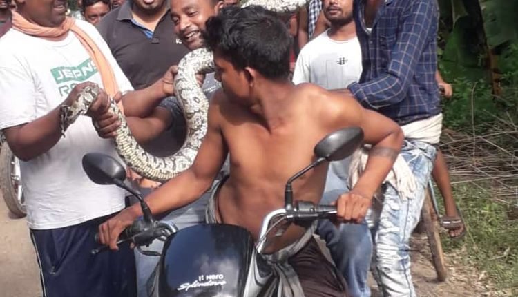 ବୋଲଗଡ଼,୩୦/୦୯(ପିପିଟି): ବୋଲଗଡ ବ୍ଳକ ଅନ୍ତର୍ଗତ ମାଗୁରା ଗ୍ରାମ ନିକଟରେ ରହିଥିବା ହଡା ନଈରେ ଗ୍ରାମର କିଛି ଯୁବକ ମାଛ ପାଇଁ ଏକ ମୁଣ୍ଡୁଳି ଜାଲ ବସାଇ ଥିଲେ । ଆଜି ସକାଳ ସମୟରେ ମାଛ ଜାଲ ଝାଡ଼ିବା ବେଳେ ଏକ ୧୦ ଫୁଟିଆ ଅଜଗର ସାପକୁ ଦେଖି ଅନ୍ୟ ଗ୍ରାମବାସୀଙ୍କୁ ଖବର ଦେଇଥିଲେ । ସାପଟି ଦୀର୍ଘ ସମୟ ଧରି ବାହାରିବାକୁ ଚେଷ୍ଟା କଲେ ମଧ୍ୟ ସେଥିରୁ ବାହାରି ପାରୁନଥିଲା । ଶେଷରେ ଗ୍ରାମବାସୀ ସାପଟିକୁ ସୁରକ୍ଷିତ ଭାବରେ ଜାଲ ମଧ୍ୟରୁ ଉଦ୍ଧାର କରିଥିଲେ । ଏହି ସାପ ବଂଶ ଟି ବିଲୁପ୍ତ ପ୍ରାୟ ଥିବାରୁ ଘଟଣା ସ୍ଥଳରେ ଶହଶହ ଲୋକ ଜମା ହୋଇ ଯାଇଥିଲେ । ପରେ ଅଜଗର ଟିକୁ ବୋଲଗଡ଼ ବନବିଭାଗକୁ ହସ୍ତାନ୍ତର କରିବା ପରେ ବନବିଭାଗ ପାଞ୍ଚଗଡ଼ ସଂରକ୍ଷିତ ଜଙ୍ଗଲରେ ଛାଡିଥିବା ସୂଚନା ଦେଇଛି ।