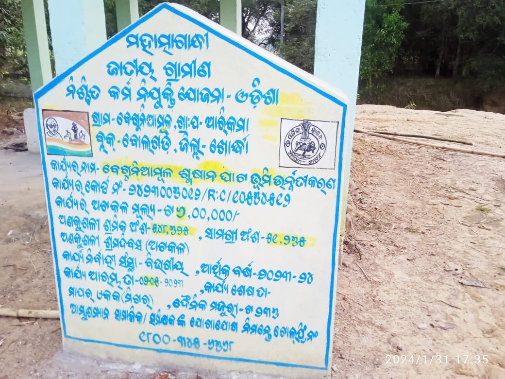 ଶ୍ମଶାନ ପାଖରେ ଲାଗିଥିବା ଭଙ୍ଗା ଫଳକ ଠକେଇର ମହାଦୁର୍ନୀତି କଥା କହୁଛି । ମାଟି ରାସ୍ତାର କ’ଣ ଉନ୍ନତି ଘଟିଛି ଦେଖିଲେ ହିଁ ବୁଝି ପାରିବେ। ଗାଁ ଲୋକେ ଏତେ ବଡ଼ ଦୁର୍ନୀତି ହୋଇଥିବା ଜାଣି ପାରି ଖୋଳତାଡ଼ କରିବା ବେଳେ ରାସ୍ତା ଉନ୍ନତିକରଣ ସମ୍ପର୍କରେ ଲାଗିଥିବା ଫଳକକୁ କେହି ଭାଙ୍ଗି ଦେଇଛନ୍ତି। ଜିଲ୍ଲା ପ୍ରଶାସନକୁ ଜଣାଇବା ପରେ କୌଣସି ଫଳ ନହେବାରୁ ଶେଷରେ ଭିଜିଲାନ୍ସର ଦ୍ବାରସ୍ତ ହୋଇଛନ୍ତି ଗାଁ ଲୋକେ।