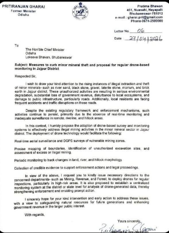 ଯାଜପୁର ,୨୭/୦୪(ପିପିଟି): ରାଜ୍ୟ ସହିତ ଯାଜପୁର ଜିଲ୍ଲାରେ ଲଘୁ ଖଣିଜ ପଦାର୍ଥ ସହିତ ଖଣିଜ ପଦାର୍ଥର ବ୍ୟାପକ ଚୋରି ହେଉଛି । ଏ ନେଇ ଆଜି ମୁଖ୍ୟମନ୍ତ୍ରୀ ମୋହନ ଚରଣ ମାଝୀଙ୍କୁ ଚିଠି ଲେଖିଛନ୍ତି ପୂର୍ବତନ ମନ୍ତ୍ରୀ ତଥା ବିଜୁ ଜନତା ଦଳର ବରିଷ୍ଠ ସାଧାରଣ ସମ୍ପାଦକ ଇଂ ପ୍ରୀତିରଞ୍ଜନ ଘଡାଇ । ଯାଜପୁର ଜିଲ୍ଲାରେ ବିଭିନ୍ନ ନଦୀର ବାଲି, କଳା ପଥର, କ୍ରୋମ, ଲାଟେରାଇଟ ପଥର, ମାଟି ଓ ନାଲିମାଟି ଭଳି ଲଘୁ ଓ ଖଣିଜ ପଦାର୍ଥର ଅବୈଧ ଉତ୍ତୋଳନ ଓ ଚୋରିର ଘଟଣା ବୃଦ୍ଧି ପାଇଛି। ଏହି ଅନଧୂକୃତ କାର୍ଯ୍ୟକଳାପ ଯୋଗୁ ଗୁରୁତ୍ବପୂର୍ଣ୍ଣ ପରିବେଶ ହ୍ରାସ, ସରକାରୀ ଆୟର ବ୍ୟାପକ କ୍ଷତି, ସ୍ଥାନୀୟ ପରିବେଶର ଅସାମଞ୍ଜସ୍ୟ ଓ ସାଧାରଣ ଭୌତିକ ଢାଞ୍ଚା ଉପରେ ବ୍ୟାପକ ପ୍ରଭାବ ପକାଉଛି । ବିଶେଷକରି ସଡକର ବ୍ୟାପକ କ୍ଷତି ହେବା ସହିତ ବିଭିନ୍ନ ସମୟରେ ଦୁର୍ଘଟଣା ମାନ ଘଟୁଛି । ସ୍ଥାନୀୟ ଲୋକମାନେ ଏହା ଦ୍ବାରା ଦୁର୍ଘଟଣା ଓ ଯାତୟାତ ବିଚ୍ଛିନ୍ନତାର ସମ୍ମୁଖୀନ ହେଉଛନ୍ତି। ଏହି ପରିପ୍ରେକ୍ଷିରେ ଡ୍ରୋନ୍ ପ୍ରଯୁକ୍ତିର ଉପଯୋଗ କରାଗଲେ ସୀମାର ସଠିକ୍ ମାପ, ଅନଧୂକୃତ ଖନନ ସୁଳ ଗୁଡିକର ପରିଚୟ ସହିତ ଅଧିକ କିମ୍ବା ଅବୈଧ ଖନନର ସଠିକ ମୂଲ୍ୟାଙ୍କନ ହୋଇ ପାରିବ । ତେଣୁ ମୁଖ୍ୟମନ୍ତ୍ରୀ ଖଣି, ରାଜସ୍ବ ଓ ଜଙ୍ଗଲ ବିଭାଗକୁ ଆବଶ୍ୟକ ଡ୍ରୋନ୍ ନିରୀକ୍ଷଣ ପଦ୍ଧତି ବ୍ୟବହାର କରିବାକୁ ନିର୍ଦ୍ଦେଶ ଦେବାକୁ ସେ ପ୍ରସ୍ତାବ ଦେଇଛନ୍ତି । ଭବିଷ୍ୟତ ପାଇଁ ପ୍ରକୃତିକୁ ସୁରକ୍ଷିତ ରଖୁବା ଏବଂ ଭବିଷ୍ୟତ ପିଢ଼ୀ ପାଇଁ ସରକାରୀ ଆୟ ବୃଦ୍ଧି କରିବାକୁ ଏହି ସମସ୍ୟାଗୁଡ଼ିକୁ ଠିକ କରିବାରେ ଆପଣଙ୍କର ସହାୟତା ଓ ଶୀଘ୍ର କାର୍ଯ୍ୟକର୍ମ ପାଇଁ ଆଶା କରୁଛି ବୋଲି ଇଂ ଘଡାଇ ନିଜ ପତ୍ର ମାଧ୍ୟମରେ ମୁଖ୍ୟମନ୍ତ୍ରୀଙ୍କୁ ପ୍ରସ୍ତାବ ଦେଇଛନ୍ତି ।