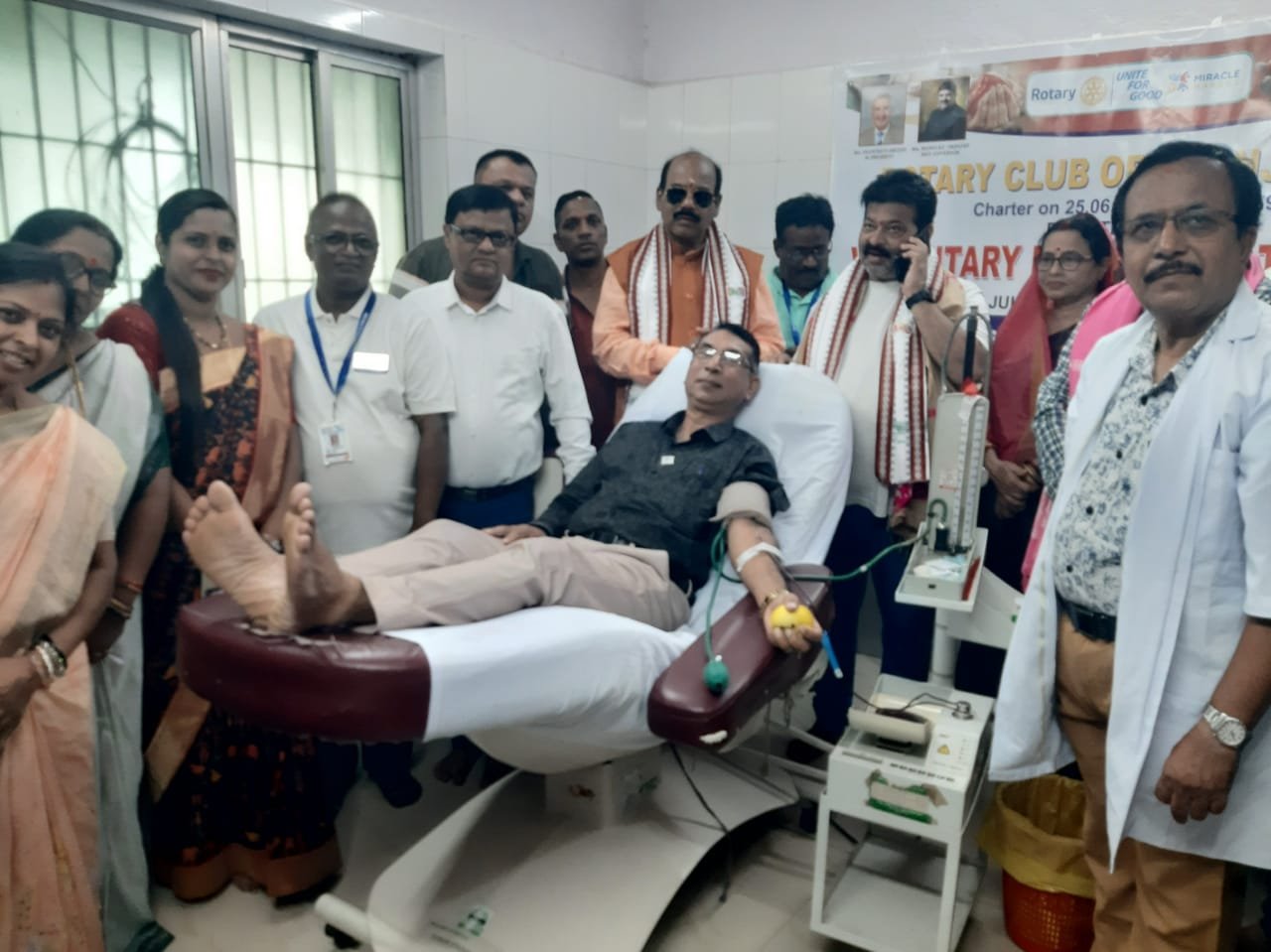 ଭଞ୍ଜନଗର, ୦୧/୦୭(ପିପିଟି):ଭଞ୍ଜନଗର ଉପଖଣ୍ଡ ଚିକିତ୍ସାଳୟ ରକ୍ତ ଭଣ୍ଡାରରେ ଆଜି ରୋଟାରୀ କ୍ଳବ ପକ୍ଷରୁ ଏକ ସ୍ବେଛାକୃତ ରକ୍ତଦାନ ଶିବିର ଅନୁଷ୍ଠିତ ହୋଇଯାଇଛି। ଚଳିତ ବର୍ଷ ରୋଟାରୀ କ୍ଳବ ଭଞ୍ଜନଗରର ସଭାପତି ଭାବେ ରଞ୍ଜିତ କୁମାର ବାରିକ ଏବଂ ସମ୍ପାଦକ ଭାବେ ଗୁପ୍ତେଶ୍ୱର ପାତ୍ର ଜୁଲାଇ ୧ ତାରିଖରେ ଆନୁଷ୍ଠାନିକ ଭାବେ ଦାୟିତ୍ୱ ହ୍ରହଣ କରିଛନ୍ତି। ଏଥି ସକାଶେ ଦିନ ତମାମ ବିଭିନ୍ନ ସାମାଜିକ କାର୍ଯ୍ୟକ୍ରମ ଅନୁଷ୍ଠାନ ହାତକୁ ନେଇଛି।କର୍ମକର୍ତ୍ତାମାନେ ଭୋର ସମୟରେ ବିଭିନ୍ନ ମନ୍ଦିରରେ ଦର୍ଶନ କରିବା ପରେ ଉପଖଣ୍ଡ ଚିକିତ୍ସାଳୟ ଠାରେ ଏକ ସ୍ବେଛାକୃତ ରକ୍ତଦାନ ଶିବିର ଅନୁଷ୍ଠିତ ହୋଇଥିଲା। ଏଥିରେ ମୋଟ ୩୦ ୟୁନିଟ ରକ୍ତ ସଂଗ୍ରହ ହୋଇଥିଲା। ମୁଖ୍ୟ ଅତିଥି ଭାବେ ଭଞ୍ଜନଗର ବିଧାୟକ ପ୍ରଦ୍ୟୁମ୍ନ କୁମାର ନାୟକ ଯୋଗ ଦେଇଥିବା ବେଳେ ମେଡିକାଲ ଅଧିକ୍ଷକ ଡାକ୍ତର ସୀତାଂଶୁ ଶେଖର ଶତପଥୀ ଶିବିର କୁ ଉଦଘାଟନ କରିଥିଲେ। ପ୍ରଥମ ରକ୍ତଦାତା ଭାବେ ରୋଟାରୀଆନ ପ୍ରଦୁମ୍ନ କୁମାର ମଲ୍ଲିକ ରକ୍ତଦାନ କରିଛନ୍ତି। ବିପଦର ବନ୍ଧୁ ଓଡ଼ିଶା ଅନୁଷ୍ଠାନର ବହୁ ସ୍ବେଛାସେବୀ ମାନେ ରକ୍ତଦାନ କରିବା ସହ ଶିବିର ରେ ସହଯୋଗ କରିଥିଲେ। ଭଞ୍ଜନଗର ରକ୍ତ ଭଣ୍ଡାର ର କର୍ମଚାରୀ ମାନେ ରକ୍ତ ସଂଗ୍ରହରେ ସହଯୋଗ କରିଥିଲେ। ଅନ୍ୟ ଅତିଥି ମାନଙ୍କ ମଧ୍ୟରେ ଏନଏସି ଅଧ୍ୟକ୍ଷ ଗୋପବନ୍ଧୁ ମହାପାତ୍ର, ମେଡିକାଲ ପରିଚାଳକ ବିଚିତ୍ର ପାଣିଗ୍ରାହୀ, ଆଇନଜୀବି ସନ୍ତୋଷ ତିଆଡ଼ି, ଡାକ୍ତର ଗୋବିନ୍ଦ ମହାପାତ୍ର ଙ୍କ ସମେତ ଭଞ୍ଜନଗର ରୋଟାରି କ୍ଳବର ସମସ୍ତ ସଦସ୍ୟ ସଦସ୍ୟା ଯୋଗଦାନ କରିଥିଲେ। ରକ୍ତଦାନ ଶିବିରର କ୍ଳବ ଇନଚାର୍ଜ କେ. ଶଙ୍କର ନାରାୟଣ ପାତ୍ର ସମସ୍ତ ରକ୍ତଦାତା ଏବଂ ସହଯୋଗୀ ମାନଙ୍କୁ ଧନ୍ୟବାଦ ଅର୍ପଣ କରିଥିଲେ।