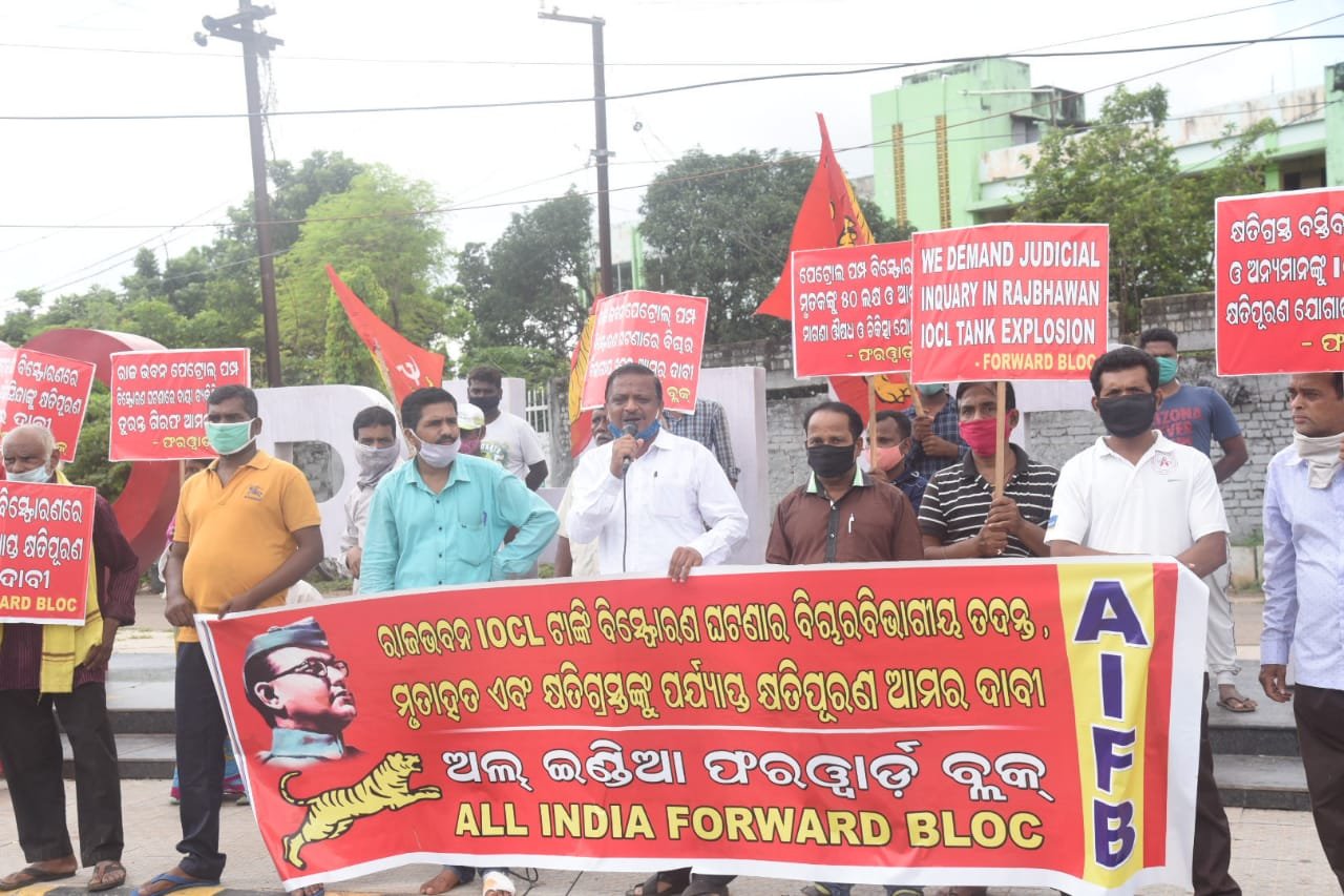 ରାଜଭବନ ପେଟ୍ରୋଲ ପମ୍ପ ବିସ୍ଫୋରଣ ଘଟଣାରେ କ୍ଷତିଗ୍ରସ୍ତଙ୍କୁ ପର୍ଯ୍ୟାପ୍ତ କ୍ଷତିପୂରଣ ପ୍ରଦାନ ଦାବୀରେ ଫରୱାର୍ଡ଼ ବ୍ଲକର ବିକ୍ଷୋଭ ।