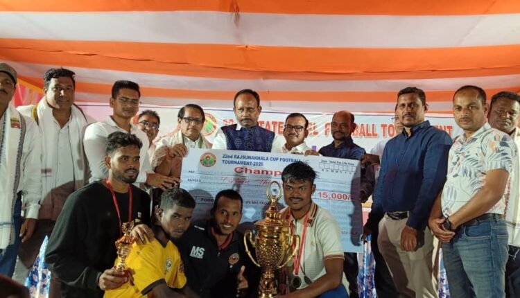 ବୋଲଗଡ଼ ,୧୪/୦୨(ପିପିଟି): ରଣପୁର ବ୍ଲକ ଅନ୍ତର୍ଗତ ରାଜସୁନାଖଳା ଫ୍ରେଣ୍ଡସ ସ୍ପୋର୍ଟସ କ୍ଲବ ଆନୁକୂଲ୍ୟରେ ରାଜସୁନାଖଳା ସରକାରୀ ଉଚ୍ଚ ବିଦ୍ୟାଳୟ ଖେଳ ପଡିଆରେ ୨୨ତମ ରାଜ୍ୟ ସ୍ତରୀୟ ଫୁଟବଲ ଟୁର୍ଣ୍ଣାମେଣ୍ଟର ଫାଇନାଲ ମ୍ୟାଚ ପପୁଲାର କ୍ଲବ ଢେଙ୍କାନାଳ ଓ ସାନ କ୍ଲବ ଭୁବନେଶ୍ୱର ମଧ୍ୟରେ ଅନୁଷ୍ଠିତ ହୋଇଯାଇଛି। ଫ୍ରେଣ୍ଡସ ସ୍ପୋର୍ଟସ କ୍ଲବର ସଭାପତି ପୂର୍ଣ୍ଣ ଚନ୍ଦ୍ର ନାୟକଙ୍କ ସଭାପତିତ୍ବରେ ମୁଖ୍ୟ ଅତିଥି ଭାବରେ ଦେବାଶିଷ ପଟ୍ଟନାୟକ ଅଧ୍ୟକ୍ଷ ଜିଲ୍ଲା ପରିଷଦ ନୟାଗଡ଼ ,ସମ୍ମାନୀତ ଅତିଥି ମନୋଜ ନାୟକ ସଭାପତି ନୟାଗଡ଼ ବସ ମାଲିକ ସଂଘର ଶେଖ୍ ୟୁସୁଫ – ସଂପାଦକ ନୟାଗଡ଼ ବସ୍ ମାଲିକ ସଂଘର,ପ୍ରକାଶ କୁମାର ସାହୁ (ପ୍ରଧାନ ଶିକ୍ଷକ, ସରକାରୀ ଉଚ୍ଚ ବିଦ୍ୟାଳୟ, ରାଜ ସୁନାଖଳା) , ପ୍ରମୁଖ ଯୋଗ ଦେଇଥିଲେ। ଏହି ମ୍ୟାଚରେ ଅତିଥିମାନେ ଓ ଫ୍ରେଣ୍ଡସ ସ୍ପୋର୍ଟସ କ୍ଲବର ସଦସ୍ୟମାନେ ପଡିଆ ମଧ୍ୟରେ ଖେଳାଲି ମାନଙ୍କ ସହ କର ମର୍ଦନ କରି ଉତ୍ତମ ଓ ସୁନ୍ଦର ଖେଳ ପଦର୍ସନ କରିବା ପାଇଁ ଖେଳାଳି ମାନଙ୍କୁ ଉତ୍ସାହିତ କରିଥିଲେ। ଟୁର୍ଣ୍ଣାମେଣ୍ଟର ଫାଇନାଲ ମ୍ୟାଚରେ ପପୁଲାର କ୍ଲବ ଢେଙ୍କାନାଳ ଓ ସାନ କ୍ଲବ ଭୁବନେଶ୍ୱର ମଧ୍ୟରେ ସଂଘର୍ଷ ପୂର୍ଣ୍ଣ ମ୍ୟାଚ ହୋଇଥିଲା । ଖେଳର ପ୍ରଥମାର୍ଦ୍ଧରେ ଢେଙ୍କାନାଳ ପକ୍ଷରୁ ଗୋଟିଏ ଗୋଲ ସ୍କୋର ହୋଇ ଥିବା ବେଳେ ଖେଳର ଦିତୀୟାର୍ଦ୍ଧରେ ମଧ୍ୟ ଗୋଟିଏ ଗୋଲ ସ୍କୋର ହୋଇ ଥିଲା। ଫଳରେ ୨-୦ ଗୋଲରେ ଢେଙ୍କାନାଳ ଅଗ୍ରଣୀ ରହି ଥିଲା। ତେବେ ୨-୦ ଗୋଲରେ ଢେଙ୍କାନାଳ ବିଜୟୀ ହୋଇଛି । ୧୫ ନମ୍ବର ଖେଳାଳିଙ୍କୁ ମ୍ୟାନ ଅଫ ଦି ମ୍ୟାଚ । ଫାଇନାଲରେ ବିଜୟୀ ହୋଇ ଥିବା ଚମ୍ପିୟାନ ଖେଳାଳି ମାନଙ୍କୁ ସ୍ଵର୍ଣ୍ଣ ପଦକ ସହିତ ଟ୍ରଫି ଓ ୧୫୦୦୦ ଟଙ୍କା ପାଇ ଥିବା ବେଳେ ରନସ୍ପ ହେଇ ଥିବା ଟିମର ପ୍ରତି ଖେଳାଳି ମାନଙ୍କୁ ରୌପ୍ୟ ପଦକ ସହିତ ୧୦୦୦୦ ଟଙ୍କା ଦିଆ ଯାଇଥିଲା । ଏହି ମ୍ୟାଚର ମୁଖ୍ୟ ରେଫରି ମିର୍ଜା ସିରାଜୁଦ୍ଦିନ ବେଗ ସହିତ ଲକ୍ଷ୍ମୀଧର ଚୌଧୁରୀ ଓ ବୈକୁଣ୍ଠ ମହାପାତ୍ର ଲାଇନରେ ରହି ସହାୟତା କରିଥିବା ବେଳେ ଚତୁର୍ଥ ରେଫରି ଭାବେ ଆଲୋକ ରଣା ଏବଂ ମ୍ୟାଚ କମିଶନର ସଦାଶିବ ସାହୁ ମ୍ୟାଚକୁ ପରିଚାଳନା କରିଥିଲେ ।