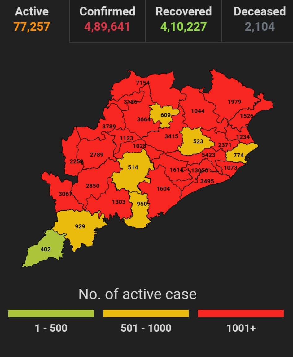 ଭୁବନେଶ୍ବର ୦୫/୦୫(ପିପିଟି); ରାଜ୍ୟରେ ନୂତନ ଆକ୍ରାନ୍ତ ସଂଖ୍ୟା ୯୮୮୯। ପଜିଟିଭ ସଂଖ୍ୟା ୪,୮୯,୬୪୧ ଚିହ୍ନଟ ହୋଇଛନ୍ତି ୪,୧୦,୨୨୭ ଜଣ ସୁସ୍ଥ ହୋଇଥିବା ବେଳେ ୭୭,୨୫୭ ଜଣ ଚିକିତ୍ସିତ ହେଉଛନ୍ତି ଏବଂ ୨୧୦୪ ଜଣଙ୍କର ମୃତ୍ୟୁ ଘଟିଛି ଏବଂ ଅନ୍ଯ ମୃତ୍ୟୁ ୫୩ ହୋଇଛି । ଖୋର୍ଦ୍ଧା ଜିଲ୍ଲାରେ ଆକ୍ରାନ୍ତ ସଂଖ୍ୟା ୭୭,୩୩୪ ସୁସ୍ଥ ସଂଖ୍ୟା ୬୩,୯୦୦ ଚିକିତ୍ସିତ ସଂଖ୍ୟା ୧୩,୦୫୦, ମୃତ ସଂଖ୍ୟା ୩୭୪ କଟକ ଜିଲ୍ଲାରେ ଆକ୍ରାନ୍ତ ସଂଖ୍ୟା ୩୮,୪୪୭ ସୁସ୍ଥ ସଂଖ୍ୟା ୩୨,୮୭୩ ଚିକିତ୍ସିତ ସଂଖ୍ୟା ୫୪୨୩, ମୃତ ସଂଖ୍ୟା ୧୪୭, ଗଞ୍ଜାମ ଜିଲ୍ଲାରେ ଆକ୍ରାନ୍ତ ସଂଖ୍ୟା ୨୫,୪୧୭, ସୁସ୍ଥ ସଂଖ୍ୟା ୨୩,୫୪୫ ଚିକିତ୍ସିତ ସଂଖ୍ୟା ୧୬୦୪ ମୃତ ସଂଖ୍ୟା ୨୬୦, ସୁନ୍ଦରଗଡ ଜିଲ୍ଲାରେ ଆକ୍ରାନ୍ତ ସଂଖ୍ୟା ୩୨,୪୬୯ ସୁସ୍ଥ ସଂଖ୍ୟା ୨୫,୧୧୧ ଚିକିତ୍ସିତ ସଂଖ୍ୟା ୭୧୫୪ ମୃତ ସଂଖ୍ୟା ୨୦୦ ବୋଲି ସ୍ୱାସ୍ଥ୍ୟ ପରିବାର କଲ୍ୟାଣ ବିଭାଗ ତରଫରୁ ଏହି ସୂଚନା ମିଳିଛି।