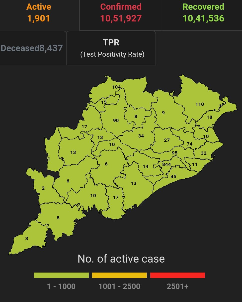 ଭୁବନେଶ୍ବର ୧୪/୧୨(ପିପିଟି); ରାଜ୍ୟରେ ନୂତନ ଆକ୍ରାନ୍ତ ସଂଖ୍ୟା ୧୭୫ ପଜିଟିଭ ସଂଖ୍ୟା ୧୦,୫୧,୯୨୭ ଚିହ୍ନଟ ହୋଇଛନ୍ତି ୧୦,୪୧,୫୩୬ ଜଣ ସୁସ୍ଥ ହୋଇଥିବା ବେଳେ ୧,୯୦୧ ଜଣ ଚିକିତ୍ସିତ ହେଉଛନ୍ତି ଏବଂ ୮୪୩୭ ଜଣଙ୍କର ମୃତ୍ୟୁ ଘଟିଛି ଏବଂ ଅନ୍ଯ ମୃତ୍ୟୁ ୫୩ ହୋଇଛି । ଖୋର୍ଦ୍ଧା ଜିଲ୍ଲାରେ ଆକ୍ରାନ୍ତ ସଂଖ୍ୟା ୧,୮୦,୩୦୫ ସୁସ୍ଥ ସଂଖ୍ୟା ୧,୭୭,୮୬୧ ଚିକିତ୍ସିତ ସଂଖ୍ୟା ୮୪୪, ମୃତ ସଂଖ୍ୟା ୧୫୮୯ କଟକ ଜିଲ୍ଲାରେ ଆକ୍ରାନ୍ତ ସଂଖ୍ୟା ୯୫,୩୭୦, ସୁସ୍ଥ ସଂଖ୍ୟା ୯୪,୪୧୩ ଚିକିତ୍ସିତ ସଂଖ୍ୟା ୯୫, ମୃତ ସଂଖ୍ୟା ୮୫୮, ଗଞ୍ଜାମ ଜିଲ୍ଲାରେ ଆକ୍ରାନ୍ତ ସଂଖ୍ୟା ୩୩,୯୫୦ ସୁସ୍ଥ ସଂଖ୍ୟା ୩୩,୪୪୮ ଚିକିତ୍ସିତ ସଂଖ୍ୟା ୧୩ ମୃତ ସଂଖ୍ୟା ୪୮୧, ସୁନ୍ଦରଗଡ ଜିଲ୍ଲାରେ ଆକ୍ରାନ୍ତ ସଂଖ୍ୟା ୬୨,୨୮୨ ସୁସ୍ଥ ସଂଖ୍ୟା ୬୧,୫୮୨ ଚିକିତ୍ସିତ ସଂଖ୍ୟା ୧୦୪, ମୃତ ସଂଖ୍ୟା ୫୯୨ ବୋଲି ସ୍ୱାସ୍ଥ୍ୟ ପରିବାର କଲ୍ୟାଣ ବିଭାଗ ତରଫରୁ ଏହି ସୂଚନା ମିଳିଛି।