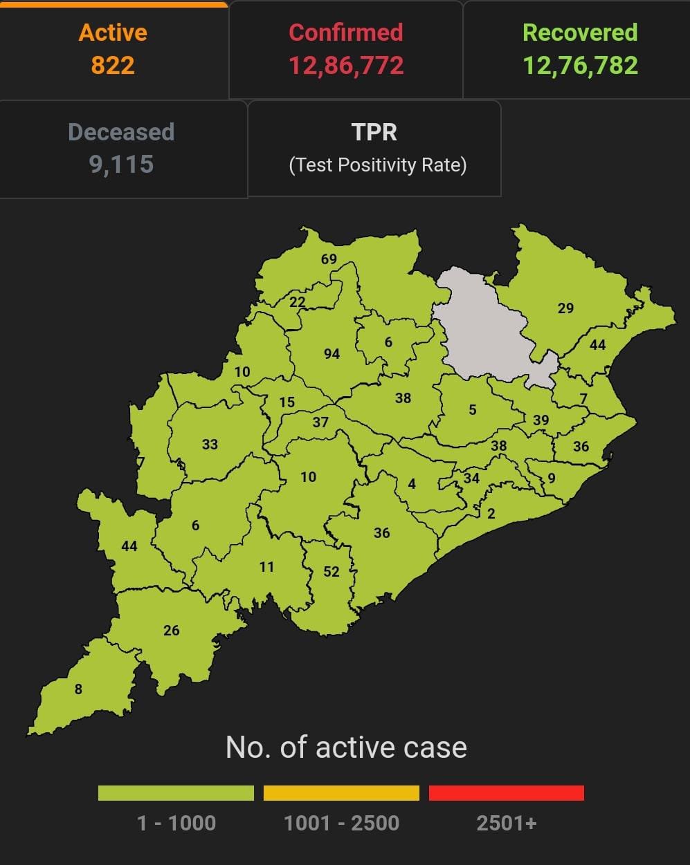 ଭୁବନେଶ୍ବର ୧୫/୦୩(ପିପିଟି); ରାଜ୍ୟରେ ନୂତନ ଆକ୍ରାନ୍ତ ସଂଖ୍ୟା ୭୮ ପଜିଟିଭ ସଂଖ୍ୟା ୧୨,୮୬,୭୭୨ ଚିହ୍ନଟ ହୋଇଛନ୍ତି ୧୨,୭୬,୭୮୨ ଜଣ ସୁସ୍ଥ ହୋଇଥିବା ବେଳେ ୮୨୨ ଜଣ ଚିକିତ୍ସିତ ହେଉଛନ୍ତି ଏବଂ ୯,୧୧୫ଜଣଙ୍କର ମୃତ୍ୟୁ ଘଟିଛି ଏବଂ ଅନ୍ଯ ମୃତ୍ୟୁ ୫୩ ହୋଇଛି । ଖୋର୍ଦ୍ଧା ଜିଲ୍ଲାରେ ଆକ୍ରାନ୍ତ ସଂଖ୍ୟା ୨,୪୪,୬୬୫ ସୁସ୍ଥ ସଂଖ୍ୟା ୨,୪୨,୮୭୩ ଚିକିତ୍ସିତ ସଂଖ୍ୟା ୩୪ ମୃତ ସଂଖ୍ୟା ୧୭୪୮, କଟକ ଜିଲ୍ଲାରେ ଆକ୍ରାନ୍ତ ସଂଖ୍ୟା ୧,୧୩,୬୯୧, ସୁସ୍ଥ ସଂଖ୍ୟା ୧,୧୨,୭୪୩ଚିକିତ୍ସିତ ସଂଖ୍ୟା ୩୮, ମୃତ ସଂଖ୍ୟା ୯୦୬, ଗଞ୍ଜାମ ଜିଲ୍ଲାରେ ଆକ୍ରାନ୍ତ ସଂଖ୍ୟା ୩୬,୬୬୮ ସୁସ୍ଥ ସଂଖ୍ୟା ୩୬,୧୧୪ଚିକିତ୍ସିତ ସଂଖ୍ୟା ୩୬, ମୃତ ସଂଖ୍ୟା ୫୧୦ ସୁନ୍ଦରଗଡ ଜିଲ୍ଲାରେ ଆକ୍ରାନ୍ତ ସଂଖ୍ୟା ୯୦,୬୯୫ ସୁସ୍ଥ ସଂଖ୍ୟା ୮୯,୯୪୧ ଚିକିତ୍ସିତ ସଂଖ୍ୟା ୬୯ ମୃତ ସଂଖ୍ୟା ୬୮୧ ବୋଲି ସ୍ୱାସ୍ଥ୍ୟ ପରିବାର କଲ୍ୟାଣ ବିଭାଗ ତରଫରୁ ଏହି ସୂଚନା ମିଳିଛି।