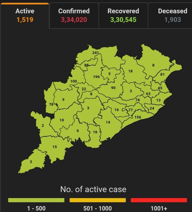 ଭୁବନେଶ୍ବର,୨୨/୦୧(ପିପିଟି); ରାଜ୍ୟରେ ନୂତନ ଆକ୍ରାନ୍ତ ସଂଖ୍ୟା ୧୫୪ । ବର୍ତ୍ତମାନ ସୁଦ୍ଧା ୭୫,୦୧,୬୯୧ ଜଣଙ୍କ ଟେଷ୍ଟ ସରିଛି । ସେଥି ମଧ୍ୟରୁ କରୋନା ପଜିଟିଭ ୩,୩୩,୮୬୬ ଚିହ୍ନଟ ହୋଇଛନ୍ତି ୩,୩୦,୫୪୫ ଜଣ ସୁସ୍ଥ ହୋଇଥିବା ବେଳେ ୧,୫୧୯ ଜଣ ଚିକିତ୍ସିତ ହେଉଛନ୍ତି ଏବଂ ୧,୯୦୩ ଜଣଙ୍କର ମୃତ୍ୟୁ ଘଟିଛି ଏବଂ ଅନ୍ଯ ମୃତ୍ୟୁ ୫୩ ହୋଇଛି । ଖୋର୍ଦ୍ଧା ଜିଲ୍ଲାରେ ଆକ୍ରାନ୍ତ ସଂଖ୍ୟା ୫୨,୯୭୯,ସୁସ୍ଥ ସଂଖ୍ୟା ୫୨,୫୫୮, ଚିକିତ୍ସିତ ସଂଖ୍ୟା ୭୭, ମୃତ ସଂଖ୍ୟା ୩୩୪, କଟକ ଜିଲାରେ ଆକ୍ରାନ୍ତ ସଂଖ୍ୟା ୨୮,୯୩୬, ସୁସ୍ଥ ସଂଖ୍ୟା ୨୮,୭୧୭, ଚିକିତ୍ସିତ ସଂଖ୍ୟା ୭୪, ମୃତ ସଂଖ୍ୟା ୧୪୧, ଗଞ୍ଜାମ ଜିଲ୍ଲାରେ ଆକ୍ରାନ୍ତ ସଂଖ୍ୟା ୨୧,୮୫୮, ସୁସ୍ଥ ସଂଖ୍ୟା ୨୧,୫୮୮, ଚିକିତ୍ସିତ ସଂଖ୍ୟା ୧୪, ମୃତ ସଂଖ୍ୟା ୨୪୮, ସ୍ୱାସ୍ଥ୍ୟ ପରିବାର କଲ୍ୟାଣ ବିଭାଗ ତରଫରୁ ଏହି ସୂଚନା ମିଳିଛି । ରାଜ୍ୟରେ ନୂତନ ଆକ୍ରାନ୍ତ ୧୫୪ ଜଣଙ୍କ ମଧ୍ୟରୁ ୮୯ କ୍ବାରେଣ୍ଟାଇନ୍ ସେଣ୍ଟର ଓ ୬୫ ଜଣ ସ୍ଥାନୀୟ ଅଞ୍ଚଳର ବୋଲି ଜଣାପଡିଛି ।