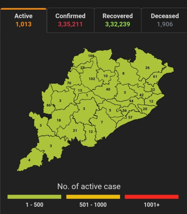ରାଜ୍ୟରେ ସଂକ୍ରାମିତ ସଂଖ୍ୟା ୩,୩୫,୨୧୧,ମୃତ୍ୟୁ ସଂଖ୍ୟା ୧,୯୦୬ ।