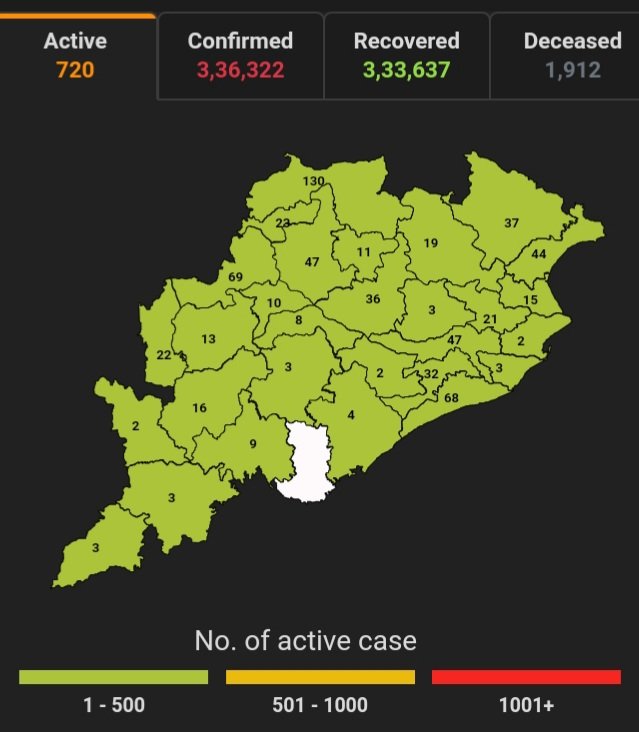 ଭୁବନେଶ୍ବର,୧୬/୦୨(ପିପିଟି); ରାଜ୍ୟରେ ନୂତନ ଆକ୍ରାନ୍ତ ସଂଖ୍ୟା ୬୦ । ବର୍ତ୍ତମାନ ସୁଦ୍ଧା ୮୦,୬୧,୧୪୬ ଜଣଙ୍କ ଟେଷ୍ଟ ସରିଛି । ସେଥି ମଧ୍ୟରୁ କରୋନା ପଜିଟିଭ ୩,୩୬,୩୨୨ ଚିହ୍ନଟ ହୋଇଛନ୍ତି ୩,୩୩,୬୩୭ ଜଣ ସୁସ୍ଥ ହୋଇଥିବା ବେଳେ ୭୨୦ ଜଣ ଚିକିତ୍ସିତ ହେଉଛନ୍ତି ଏବଂ ୧,୯୧୨ ଜଣଙ୍କର ମୃତ୍ୟୁ ଘଟିଛି ଏବଂ ଅନ୍ଯ ମୃତ୍ୟୁ ୫୩ ହୋଇଛି । ଖୋର୍ଦ୍ଧା ଜିଲ୍ଲାରେ ଆକ୍ରାନ୍ତ ସଂଖ୍ୟା ୫୩,୧୩୫,ସୁସ୍ଥ ସଂଖ୍ୟା ୫୨,୭୫୭, ଚିକିତ୍ସିତ ସଂଖ୍ୟା ୩୨, ମୃତ ସଂଖ୍ୟା ୩୩୬, କଟକ ଜିଲ୍ଲାରେ ଆକ୍ରାନ୍ତ ସଂଖ୍ୟା ୨୯,୧୧୬, ସୁସ୍ଥ ସଂଖ୍ୟା ୨୮,୯୨୩, ଚିକିତ୍ସିତ ସଂଖ୍ୟା ୪୭, ମୃତ ସଂଖ୍ୟା ୧୪୨, ଗଞ୍ଜାମ ଜିଲ୍ଲାରେ ଆକ୍ରାନ୍ତ ସଂଖ୍ୟା ୨୧,୮୯୦, ସୁସ୍ଥ ସଂଖ୍ୟା ୨୧,୬୩୦, ଚିକିତ୍ସିତ ସଂଖ୍ୟା ୦୪, ମୃତ ସଂଖ୍ୟା ୨୪୮, ସ୍ୱାସ୍ଥ୍ୟ ପରିବାର କଲ୍ୟାଣ ବିଭାଗ ତରଫରୁ ଏହି ସୂଚନା ମିଳିଛି । ରାଜ୍ୟରେ ନୂତନ ଆକ୍ରାନ୍ତ ୬୦ ଜଣଙ୍କ ମଧ୍ୟରୁ ୩୬ କ୍ବାରେଣ୍ଟାଇନ୍ ସେଣ୍ଟର ଓ ୨୪ ଜଣ ସ୍ଥାନୀୟ ଅଞ୍ଚଳର ବୋଲି ଜଣାପଡିଛି ।