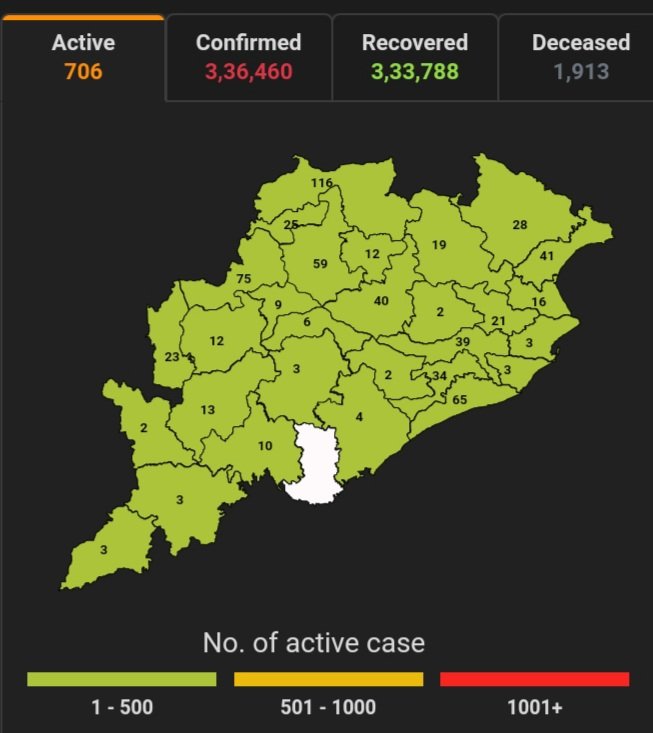 ଭୁବନେଶ୍ବର,୧୮/୦୨(ପିପିଟି); ରାଜ୍ୟରେ ନୂତନ ଆକ୍ରାନ୍ତ ସଂଖ୍ୟା ୬୩ । ବର୍ତ୍ତମାନ ସୁଦ୍ଧା ୮୧,୦୦,୭୪୯ ଜଣଙ୍କ ଟେଷ୍ଟ ସରିଛି । ସେଥି ମଧ୍ୟରୁ କରୋନା ପଜିଟିଭ ୩,୩୬,୪୬୦ ଚିହ୍ନଟ ହୋଇଛନ୍ତି ୩,୩୩,୭୮୮ ଜଣ ସୁସ୍ଥ ହୋଇଥିବା ବେଳେ ୭୦୬ ଜଣ ଚିକିତ୍ସିତ ହେଉଛନ୍ତି ଏବଂ ୧,୯୧୩ ଜଣଙ୍କର ମୃତ୍ୟୁ ଘଟିଛି ଏବଂ ଅନ୍ଯ ମୃତ୍ୟୁ ୫୩ ହୋଇଛି । ଖୋର୍ଦ୍ଧା ଜିଲ୍ଲାରେ ଆକ୍ରାନ୍ତ ସଂଖ୍ୟା ୫୩,୧୪୩,ସୁସ୍ଥ ସଂଖ୍ୟା ୫୨,୭୬୩, ଚିକିତ୍ସିତ ସଂଖ୍ୟା ୩୪, ମୃତ ସଂଖ୍ୟା ୩୩୬, କଟକ ଜିଲ୍ଲାରେ ଆକ୍ରାନ୍ତ ସଂଖ୍ୟା ୨୯,୧୧୭, ସୁସ୍ଥ ସଂଖ୍ୟା ୨୮,୯୩୨, ଚିକିତ୍ସିତ ସଂଖ୍ୟା ୩୯, ମୃତ ସଂଖ୍ୟା ୧୪୨, ଗଞ୍ଜାମ ଜିଲ୍ଲାରେ ଆକ୍ରାନ୍ତ ସଂଖ୍ୟା ୨୧,୮୯୧, ସୁସ୍ଥ ସଂଖ୍ୟା ୨୧,୬୩୧, ଚିକିତ୍ସିତ ସଂଖ୍ୟା ୦୪, ମୃତ ସଂଖ୍ୟା ୨୪୮, ସ୍ୱାସ୍ଥ୍ୟ ପରିବାର କଲ୍ୟାଣ ବିଭାଗ ତରଫରୁ ଏହି ସୂଚନା ମିଳିଛି । ରାଜ୍ୟରେ ନୂତନ ଆକ୍ରାନ୍ତ ୬୩ ଜଣଙ୍କ ମଧ୍ୟରୁ ୩୯ କ୍ବାରେଣ୍ଟାଇନ୍ ସେଣ୍ଟର ଓ ୨୪ ଜଣ ସ୍ଥାନୀୟ ଅଞ୍ଚଳର ବୋଲି ଜଣାପଡିଛି ।