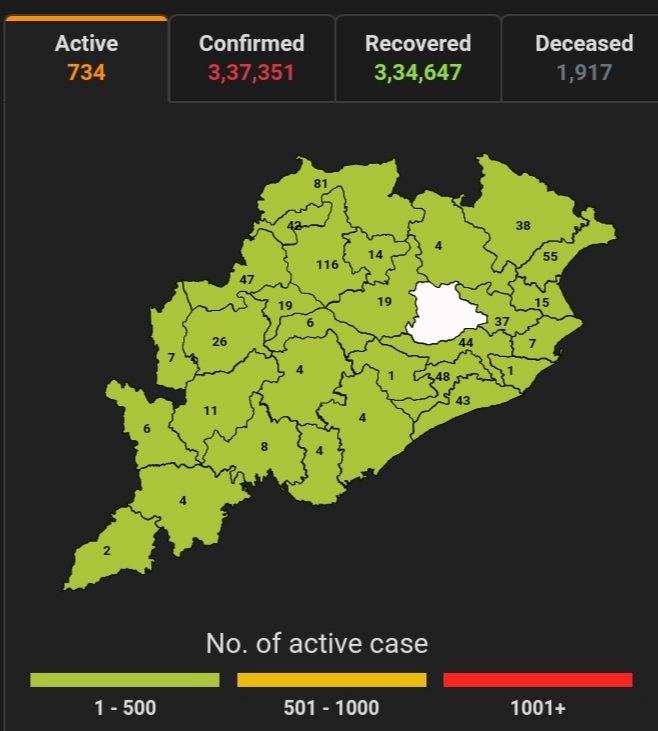 ଭୁବନେଶ୍ବର,୦୨/୦୩(ପିପିଟି); ରାଜ୍ୟରେ ନୂତନ ଆକ୍ରାନ୍ତ ସଂଖ୍ୟା ୭୪ । ବର୍ତ୍ତମାନ ସୁଦ୍ଧା ୮୩,୬୦,୧୪୫ ଜଣଙ୍କ ଟେଷ୍ଟ ସରିଛି । ସେଥି ମଧ୍ୟରୁ କରୋନା ପଜିଟିଭ ୩,୩୭,୩୫୧ ଚିହ୍ନଟ ହୋଇଛନ୍ତି ୩,୩୪,୬୪୭ ଜଣ ସୁସ୍ଥ ହୋଇଥିବା ବେଳେ ୭୩୪ ଜଣ ଚିକିତ୍ସିତ ହେଉଛନ୍ତି ଏବଂ ୧,୯୧୭ ଜଣଙ୍କର ମୃତ୍ୟୁ ଘଟିଛି ଏବଂ ଅନ୍ଯ ମୃତ୍ୟୁ ୫୩ ହୋଇଛି । ଖୋର୍ଦ୍ଧା ଜିଲ୍ଲାରେ ଆକ୍ରାନ୍ତ ସଂଖ୍ୟା ୫୩,୨୨୦,ସୁସ୍ଥ ସଂଖ୍ୟା ୫୨,୮୨୪, ଚିକିତ୍ସିତ ସଂଖ୍ୟା ୪୮, ମୃତ ସଂଖ୍ୟା ୩୩୮, କଟକ ଜିଲ୍ଲାରେ ଆକ୍ରାନ୍ତ ସଂଖ୍ୟା ୨୯,୧୬୮, ସୁସ୍ଥ ସଂଖ୍ୟା ୨୮,୯୭୮, ଚିକିତ୍ସିତ ସଂଖ୍ୟା ୪୪, ମୃତ ସଂଖ୍ୟା ୧୪୨, ଗଞ୍ଜାମ ଜିଲ୍ଲାରେ ଆକ୍ରାନ୍ତ ସଂଖ୍ୟା ୨୧,୮୯୭, ସୁସ୍ଥ ସଂଖ୍ୟା ୨୧,୬୩୭, ଚିକିତ୍ସିତ ସଂଖ୍ୟା ୦୪, ମୃତ ସଂଖ୍ୟା ୨୪୮, ସ୍ୱାସ୍ଥ୍ୟ ପରିବାର କଲ୍ୟାଣ ବିଭାଗ ତରଫରୁ ଏହି ସୂଚନା ମିଳିଛି । ରାଜ୍ୟରେ ନୂତନ ଆକ୍ରାନ୍ତ ୭୪ ଜଣଙ୍କ ମଧ୍ୟରୁ ୪୫ କ୍ବାରେଣ୍ଟାଇନ୍ ସେଣ୍ଟର ଓ ୨୯ ଜଣ ସ୍ଥାନୀୟ ଅଞ୍ଚଳର ବୋଲି ଜଣାପଡିଛି ।