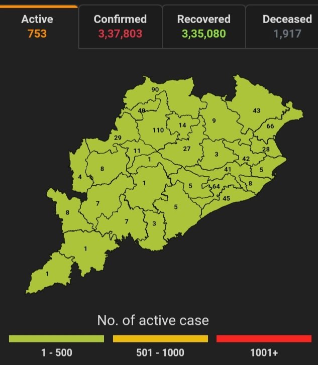 ଭୁବନେଶ୍ବର,୦୮/୦୩(ପିପିଟି); ରାଜ୍ୟରେ ନୂତନ ଆକ୍ରାନ୍ତ ସଂଖ୍ୟା ୫୯ । ବର୍ତ୍ତମାନ ସୁଦ୍ଧା ୮୪,୯୨,୧୫୧ ଜଣଙ୍କ ଟେଷ୍ଟ ସରିଛି । ସେଥି ମଧ୍ୟରୁ କରୋନା ପଜିଟିଭ ୩,୩୭,୮୦୩ ଚିହ୍ନଟ ହୋଇଛନ୍ତି ୩,୩୫,୦୮୦ ଜଣ ସୁସ୍ଥ ହୋଇଥିବା ବେଳେ ୭୫୩ ଜଣ ଚିକିତ୍ସିତ ହେଉଛନ୍ତି ଏବଂ ୧,୯୧୭ ଜଣଙ୍କର ମୃତ୍ୟୁ ଘଟିଛି ଏବଂ ଅନ୍ଯ ମୃତ୍ୟୁ ୫୩ ହୋଇଛି । ଖୋର୍ଦ୍ଧା ଜିଲ୍ଲାରେ ଆକ୍ରାନ୍ତ ସଂଖ୍ୟା ୫୩,୨୭୫,ସୁସ୍ଥ ସଂଖ୍ୟା ୫୨,୮୬୩, ଚିକିତ୍ସିତ ସଂଖ୍ୟା ୬୪, ମୃତ ସଂଖ୍ୟା ୩୩୮, କଟକ ଜିଲ୍ଲାରେ ଆକ୍ରାନ୍ତ ସଂଖ୍ୟା ୨୯,୧୭୨, ସୁସ୍ଥ ସଂଖ୍ୟା ୨୮,୯୮୨, ଚିକିତ୍ସିତ ସଂଖ୍ୟା ୪୪, ମୃତ ସଂଖ୍ୟା ୧୪୨, ଗଞ୍ଜାମ ଜିଲ୍ଲାରେ ଆକ୍ରାନ୍ତ ସଂଖ୍ୟା ୨୧,୯୦୧, ସୁସ୍ଥ ସଂଖ୍ୟା ୨୧,୬୪୦, ଚିକିତ୍ସିତ ସଂଖ୍ୟା ୦୫, ମୃତ ସଂଖ୍ୟା ୨୪୮, ସ୍ୱାସ୍ଥ୍ୟ ପରିବାର କଲ୍ୟାଣ ବିଭାଗ ତରଫରୁ ଏହି ସୂଚନା ମିଳିଛି । ରାଜ୍ୟରେ ନୂତନ ଆକ୍ରାନ୍ତ ୫୯ ଜଣଙ୍କ ମଧ୍ୟରୁ ୩୫ କ୍ବାରେଣ୍ଟାଇନ୍ ସେଣ୍ଟର ଓ ୨୪ ଜଣ ସ୍ଥାନୀୟ ଅଞ୍ଚଳର ବୋଲି ଜଣାପଡିଛି ।