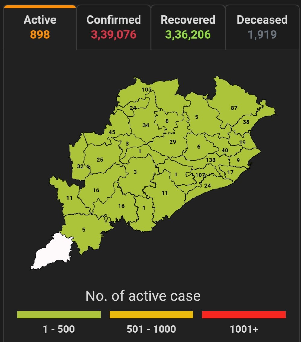 ରାଜ୍ୟରେ ସଂକ୍ରାମିତ ସଂଖ୍ୟା ୩,୩୯,୦୭୬ମୃତ୍ୟୁ ସଂଖ୍ୟା ୧,୯୧୯ ।