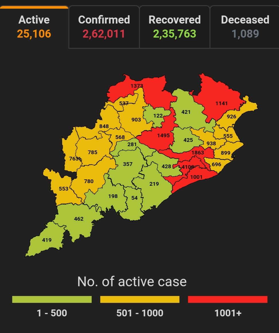 ଭୁବନେଶ୍ବର,୧୫/୧୦(ପିପିଟି); ରାଜ୍ୟରେ ନୂତନ ଆକ୍ରାନ୍ତ ସଂଖ୍ୟା ୨,୪୭୦ । ବର୍ତ୍ତମାନ ସୁଦ୍ଧା ୩୯,୨୧,୧୪୦ ଜଣଙ୍କ ଟେଷ୍ଟ ସରିଛି । ସେଥି ମଧ୍ୟରୁ କରୋନା ପଜିଟିଭ ୨,୬୨,୦୧୧ ଚିହ୍ନଟ ହୋଇଛନ୍ତି ୨,୩୫,୭୬୩ ଜଣ ସୁସ୍ଥ ହୋଇଥିବା ବେଳେ ୨୫,୧୦୬ ଜଣ ଚିକିତ୍ସିତ ହେଉଛନ୍ତି ଏବଂ ୧୦୮୯ ଜଣଙ୍କର ମୃତ୍ୟୁ ଘଟିଛି ଏବଂ ଅନ୍ଯ ମୃତ୍ୟୁ ୫୩ ହୋଇଛି । ସ୍ୱାସ୍ଥ୍ୟ ପରିବାର କଲ୍ୟାଣ ବିଭାଗ ତରଫରୁ ଏହି ସୂଚନା ମିଳିଛି । ନୂତନ ଆକ୍ରାନ୍ତ ୨,୪୭୦ ଜଣଙ୍କ ମଧ୍ୟରୁ ୧,୪୬୨ କ୍ବାରେଣ୍ଟାଇନ୍ ସେଣ୍ଟର ଓ ୧,୦୦୮ ଜଣ ସ୍ଥାନୀୟ ଅଞ୍ଚଳର ବୋଲି ଜଣାପଡିଛି ।