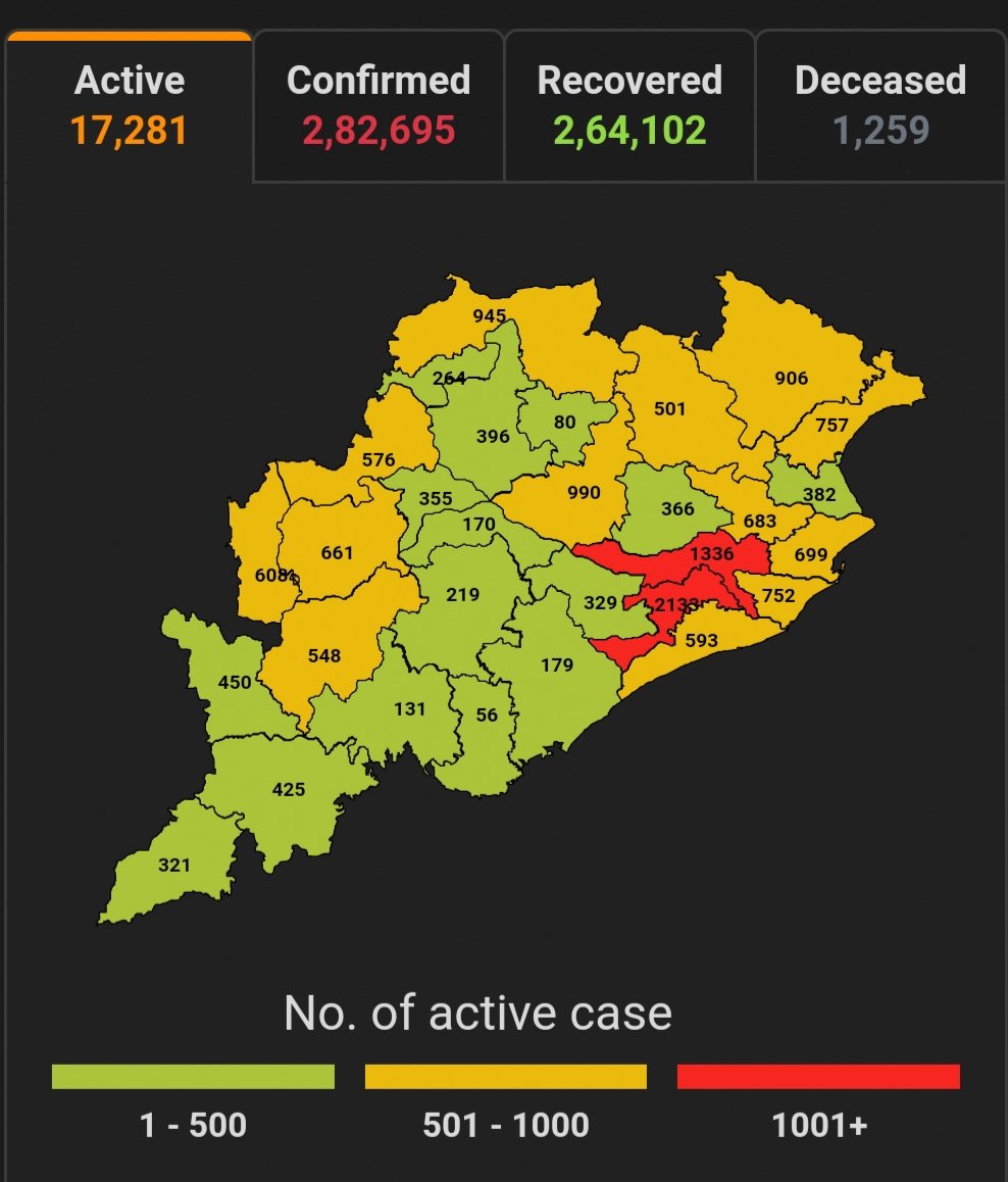 ରାଜ୍ୟରେ ସଂକ୍ରାମିତ ସଂଖ୍ୟା ୨,୮୨,୬୯୫, ମୃତ୍ୟୁ ସଂଖ୍ୟା ୧,୨୫୯ ।