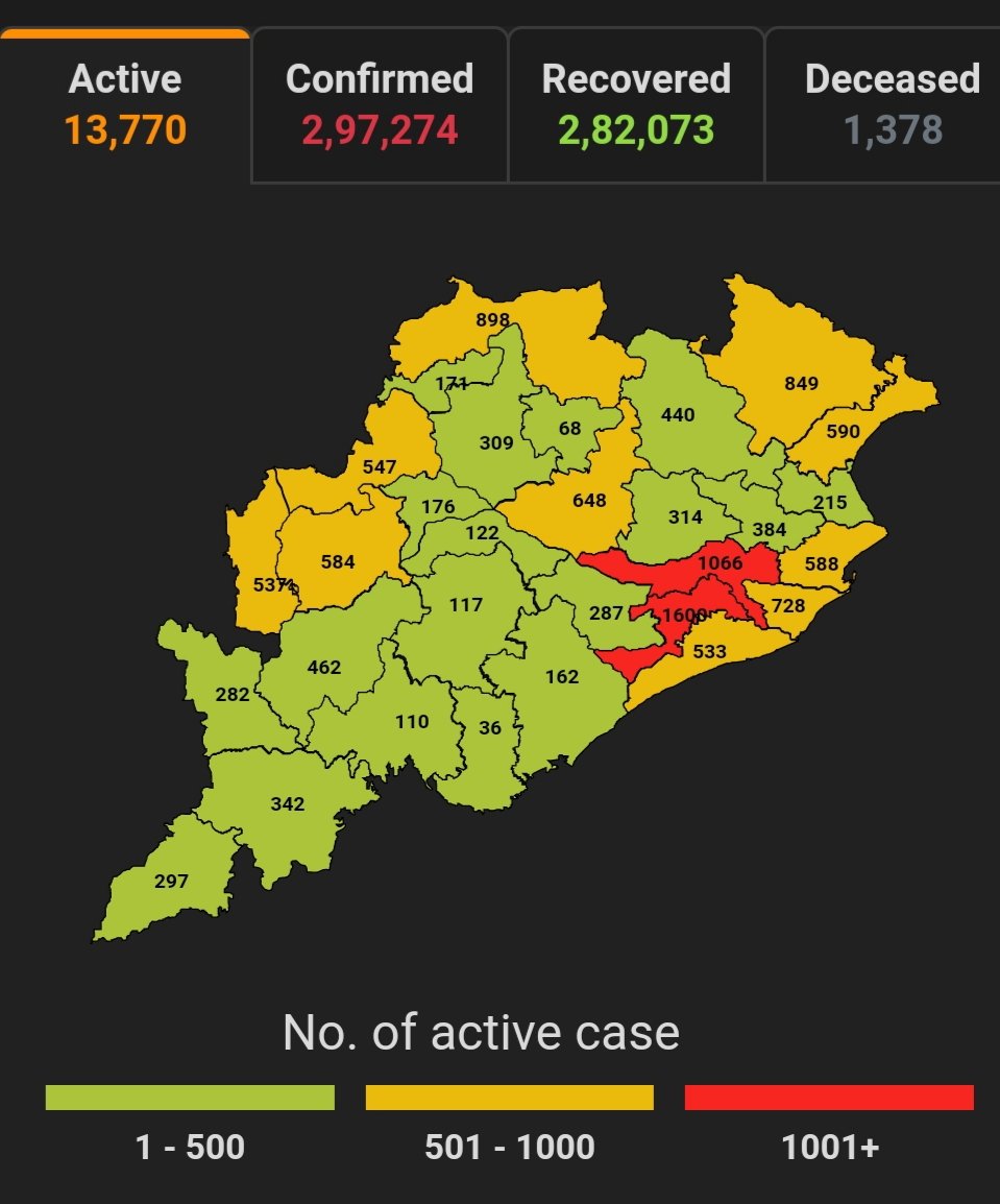 ଭୁବନେଶ୍ବର,୦୫/୧୧(ପିପିଟି); ରାଜ୍ୟରେ ନୂତନ ଆକ୍ରାନ୍ତ ସଂଖ୍ୟା ୧,୩୮୫ । ବର୍ତ୍ତମାନ ସୁଦ୍ଧା ୪୭,୮୮,୦୨୬ ଜଣଙ୍କ ଟେଷ୍ଟ ସରିଛି । ସେଥି ମଧ୍ୟରୁ କରୋନା ପଜିଟିଭ ୨,୯୭,୨୭୪ ଚିହ୍ନଟ ହୋଇଛନ୍ତି ୨,୮୨,୦୭୩ ଜଣ ସୁସ୍ଥ ହୋଇଥିବା ବେଳେ ୧୩,୭୭୦ ଜଣ ଚିକିତ୍ସିତ ହେଉଛନ୍ତି ଏବଂ ୧,୩୭୮ ଜଣଙ୍କର ମୃତ୍ୟୁ ଘଟିଛି ଏବଂ ଅନ୍ଯ ମୃତ୍ୟୁ ୫୩ ହୋଇଛି । ସ୍ୱାସ୍ଥ୍ୟ ପରିବାର କଲ୍ୟାଣ ବିଭାଗ ତରଫରୁ ଏହି ସୂଚନା ମିଳିଛି । ନୂତନ ଆକ୍ରାନ୍ତ ୧,୩୮୫ ଜଣଙ୍କ ମଧ୍ୟରୁ ୭୯୮ କ୍ବାରେଣ୍ଟାଇନ୍ ସେଣ୍ଟର ଓ ୫୮୭ ଜଣ ସ୍ଥାନୀୟ ଅଞ୍ଚଳର ବୋଲି ଜଣାପଡିଛି ।