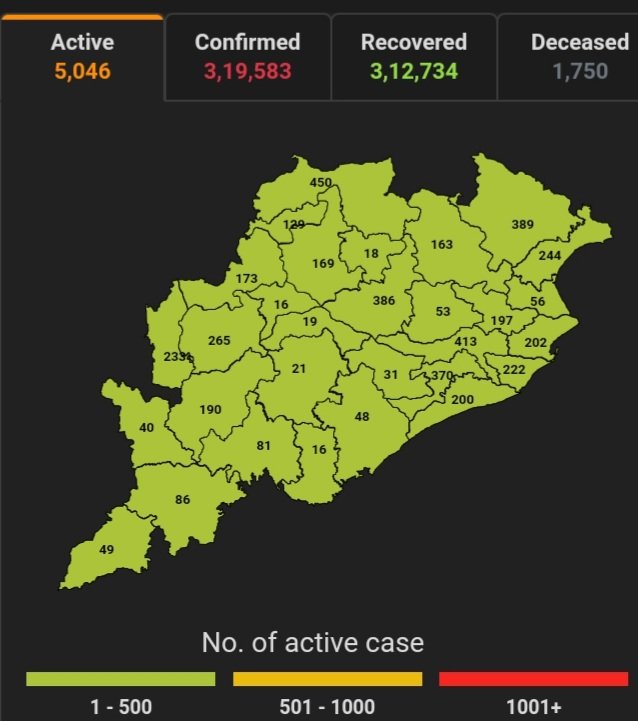 ରାଜ୍ୟରେ ସଂକ୍ରାମିତ ସଂଖ୍ୟା ୩,୧୯,୫୮୩, ମୃତ୍ୟୁ ସଂଖ୍ୟା ୧,୭୫୦ ।