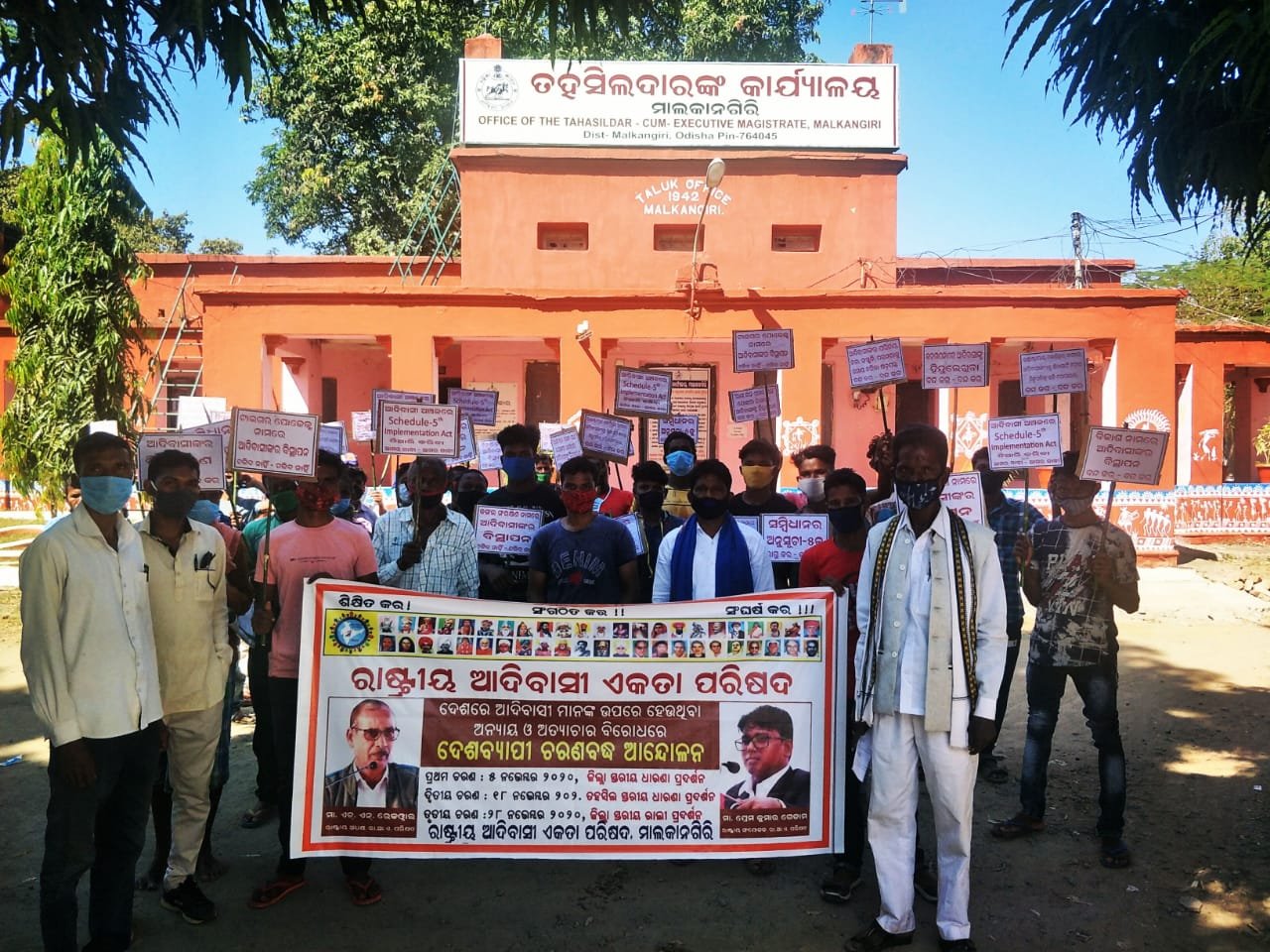 ମାଲକାନଗିରି,ତା:୧୯/୧୧(ପିପିଟି) ରାଷ୍ଟ୍ରୀୟ ଆଦିବାସୀ ଏକତା ପରିଷଦ ପକ୍ଷରୁ ଆଦିବାସୀଙ୍କ ସ୍ୱତନ୍ତ୍ର ଅଧିକାର ଗୁଡିକର ସୁରକ୍ଷା ନିମନ୍ତେ ମାଲକାନଗିରି ଜିଲ୍ଲାର ସମସ୍ତ ବ୍ଲକ୍ ଓ ତହସିଲ ସ୍ତରୀୟ ବିପ୍ଳବୀ କ୍ରାନ୍ତିକାରୀ ବନ୍ଧୁମାନଙ୍କ ତରଫରୁ ରାଷ୍ଟ୍ରପତିଙ୍କ ଉଦ୍ଦେଶ୍ୟରେ ସ୍ଥାନୀୟ ତହସିଲଦାରଙ୍କ ଜରିଆରେ ଦାବିପତ୍ର ପ୍ରଦାନ କରାଯାଇଛି । ଦେଶରେ ଆଦିବାସିଙ୍କ ଉପରେ ହେଉଥିବା ଅନ୍ୟାୟ ଅତ୍ୟାଚାର ବିରୋଧରେ ଦେଶବ୍ୟାପୀ ଆନ୍ଦୋଳନ କରା ଯାଉଅଛି। ଦାବିପତ୍ରରେ ଆଦିବାସୀ ମାନଙ୍କର ପରିଚୟ ସମାପ୍ତ କରିବାକୁ ଷଡଯନ୍ତ୍ର । ୨୦୨୧ ଜନଗଣନାରେ ଆଦିବାସୀ ମାନଙ୍କ ପାଇଁ ଅଲଗା ଧର୍ମ କୋଡ ବ୍ୟବସ୍ଥା କରାଯାଉ। ଧାର୍ମିକ ସ୍ବାଧୀନତାର ମୌଳିକ ଅଧିକାରରୁ ବଞ୍ଚିତ କରି ରଖିବା। ଆଦିବାସୀ ମାନେ ବନବାସୀ ନୁହଁନ୍ତି ।ଆଦିବାସୀଙ୍କ ବିରୋଧରେ ନକଲି ଏବଂ ମିଥ୍ୟା ମାମଲା ଉଛେଦ କରାଯାଉ ।ଭୂମି-ମାଫିଆଙ୍କ ମାଧ୍ୟମରେ ଆଦିବାସୀ ମାନଙ୍କ ପ୍ରତି ଷଡଯନ୍ତ୍ରକୁ ବନ୍ଦ କରାଯାଉ। ଆଦିବାସୀଙ୍କ ବିରୁଦ୍ଧରେ ଦେଶର ନ୍ୟାୟପାଳିକା କାର୍ଯ୍ୟ କରୁଛି।ସିଏନଟି ଏବଂ ଏସପିଟି ଆକ୍ଟକୁ ସମାପ୍ତ କରିବାର ଷଡଯନ୍ତ୍ର ବନ୍ଦ କରାଯାଉ। ବିକାଶ ନାମରେ ଆଦିବାସୀମାନଙ୍କର ବିସ୍ଥାପନ ବନ୍ଦ କରାଯାଉ। ପ୍ରଲୋଭନ ଦେଖାଇ ଆଦିବାସୀମାନଙ୍କର ସମ୍ପତିକୁ ଲୁଟ କରବାର ଷଡଯନ୍ତ୍ରକୁ ବନ୍ଦ କରାଯାଉ। ଲିଖିତ ଦଲିଲ ମାଧ୍ୟମରେ ଆଦିବାସୀମାନଙ୍କର ପରିଚୟକୁ ସମାପ୍ତ କରିବା ଷଡଯନ୍ତ୍ର ବନ୍ଦ କରାଯାଉ।ସିଏଏ/ଏନଆରସି/ଏନ ଆରପି ଦ୍ବାରା ଆଦିବାସୀ ମାନଙ୍କୁ ଉଛେଦ କରିବା ଚକ୍ରନ୍ତକୁ ବନ୍ଦ କରାଯାଉ । ଲକ୍ ଡାଉନ୍ ସମୟରେ ଲୋକଙ୍କର ମୌଳିକ ଅଧିକାରର ଉଲ୍ଲଂଘନରୁ ସରକାର କ୍ଷାନ୍ତ ରହନ୍ତୁ ।ଆଦିବାସୀଙ୍କୁ ମାଓବାଦୀ ଆକ୍ଷେପ କରିବାର ଷଡଯନ୍ତ୍ରରୁ ନିବୃତ୍ତ ରହନ୍ତୁ। ଅନୁସୂଚୀତ କ୍ଷେତ୍ରକୁ (ସେଡ୍ୟୁଲ୍ଡ ଏରିଆ) ଅଣ -ଅନୁସୂଚୀତ କ୍ଷେତ୍ରରେ ରୂପାନ୍ତର କରିବାର ସଂପର୍କରେ ସମୀକ୍ଷା କରାଯାଉ । ଆଦିବାସୀ ମାନଙ୍କର ବିଚ୍ଛିନ୍ନକରଣ ।ଆଦିବାସୀଙ୍କ ମହାପୁରୁଷଙ୍କୁ ବିକୃତି କରିବା ପାଇଁ ଷଡଯନ୍ତ୍ର ପ୍ରୟାସରୁ କ୍ଷାନ୍ତ ରହନ୍ତୁ ଇତ୍ୟାଦି କୁ ନେଇ ଦେଶବ୍ୟାପି ଆନ୍ଦୋଳନ କରାଯାଇଅଛି । ଏହି କାର୍ଯ୍ୟକ୍ରମରେ ଘେନୁ ମୁଦୁଲି, ଜାରା ଶବର ମାଡି, ହରି ଗୋଲରି , କର୍ଣ୍ଣ ପଡିଆମୀ , ଲକ୍ଷ୍ମଣ ଘରାମୀ ଓ ଅନ୍ୟାନ୍ୟ ତହସିଲର ଆଦିବାସୀ ସଂଗଠନର ନେତୃବୃନ୍ଦ ଉପସ୍ଥିତ ଥଲେ।
