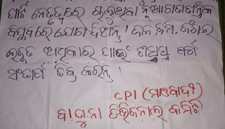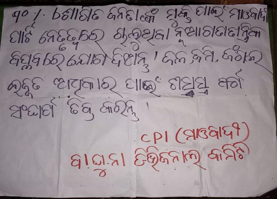 ରାସ୍ତାରେ ହାତଲେଖା ମାଓବାଦୀ ପୋଷ୍ଟର ।
