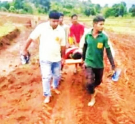 ରାସ୍ତା ଖରାପ ଯୋଗୁଁ ୨ କିମି ଷ୍ଟ୍ରେଚରରେ ବୁହା ହେଲା ରୋଗୀ ।